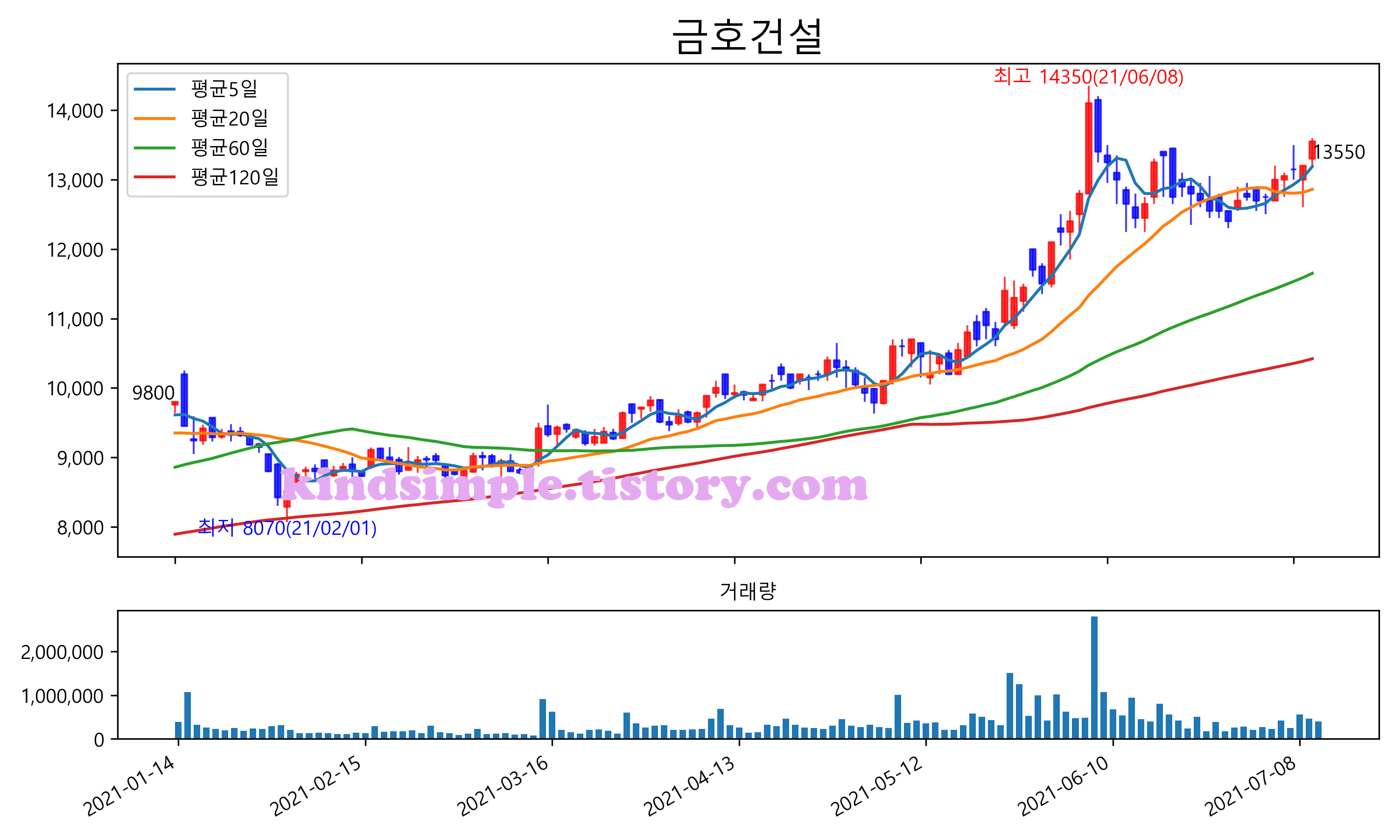 최근 6개월간 캔들차트 및 이동평균선입니다.