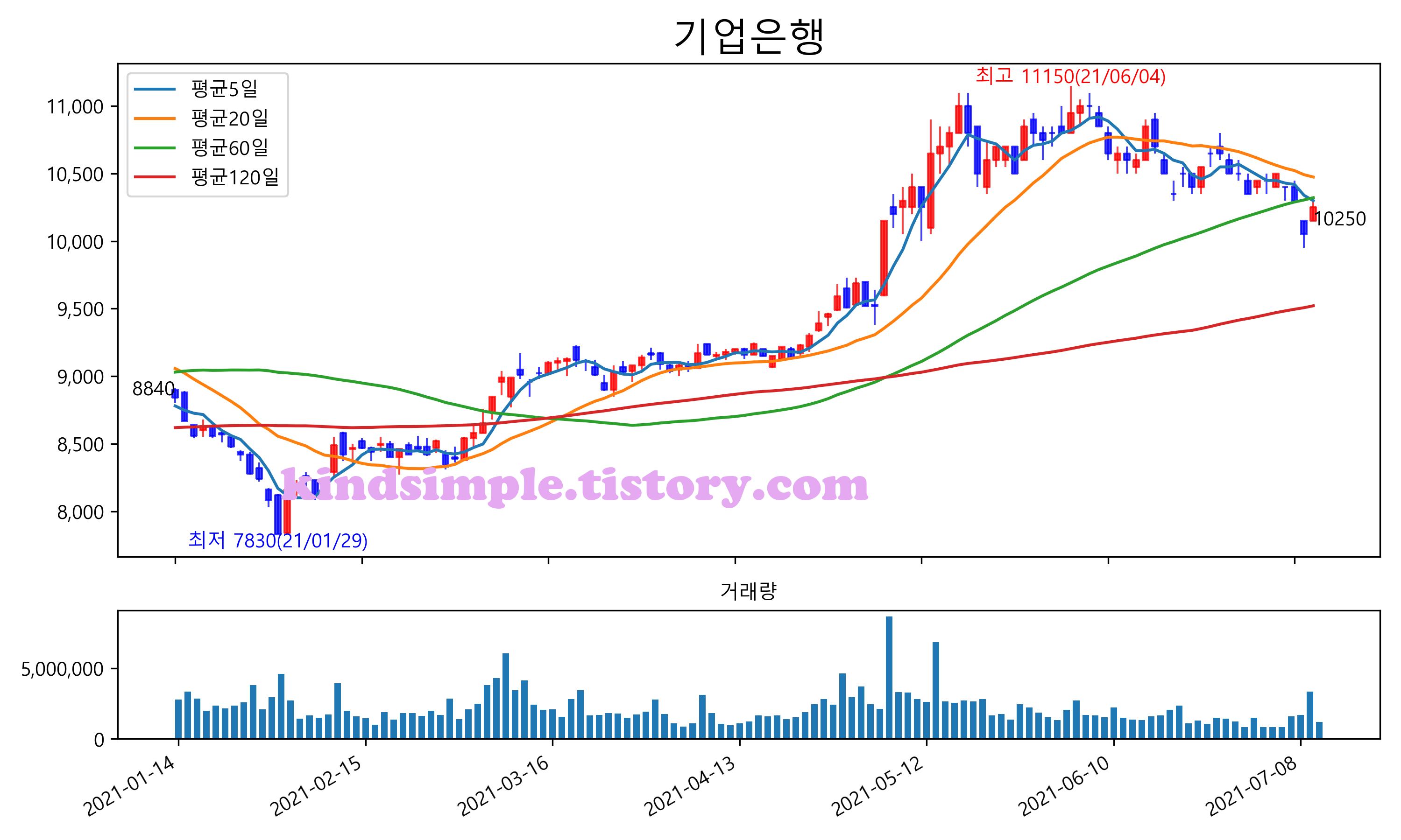 최근 6개월간 캔들차트 및 이동평균선입니다.