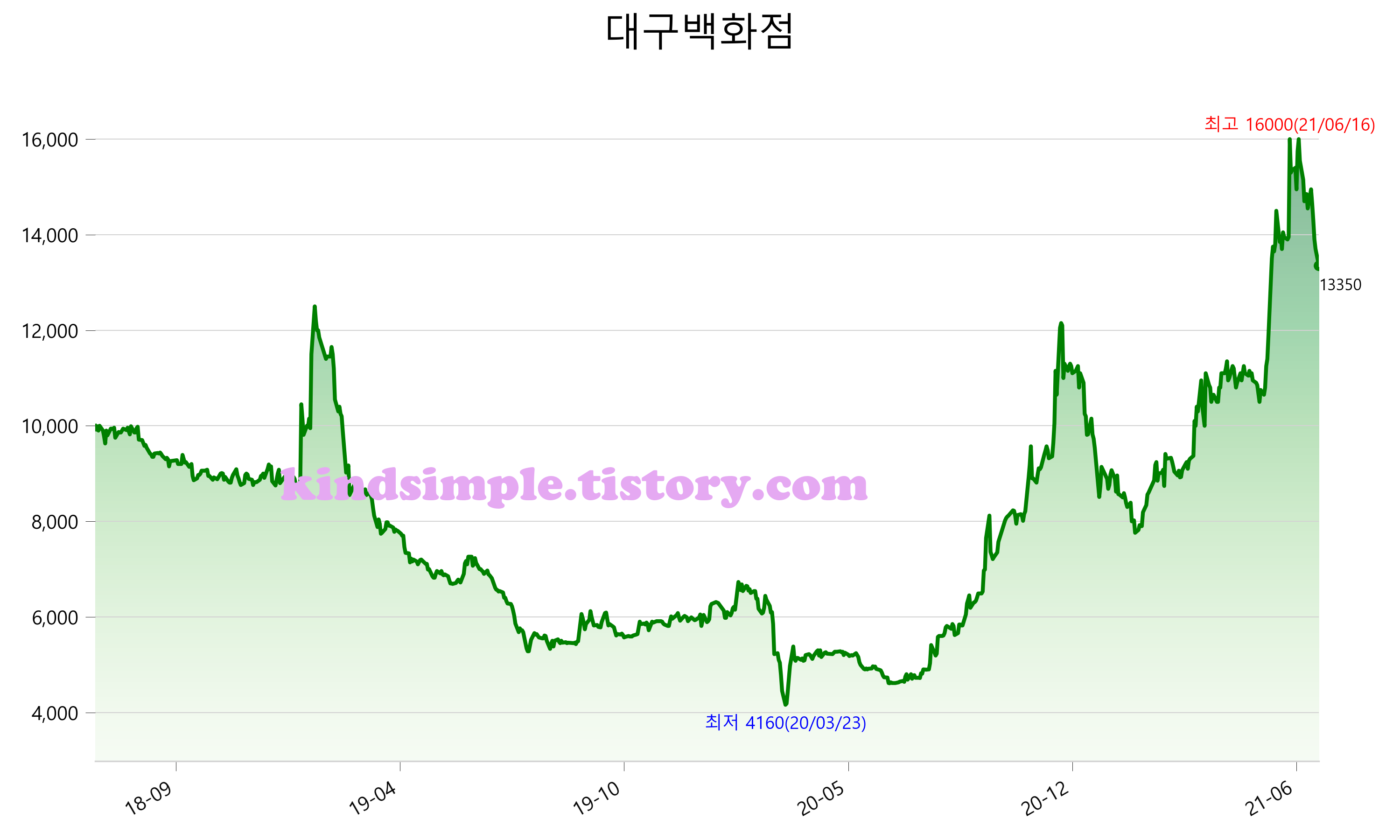 7월 13일 기준 주가는 13,350원 입니다. 아래는 최근 3년간의 주가흐름입니다.