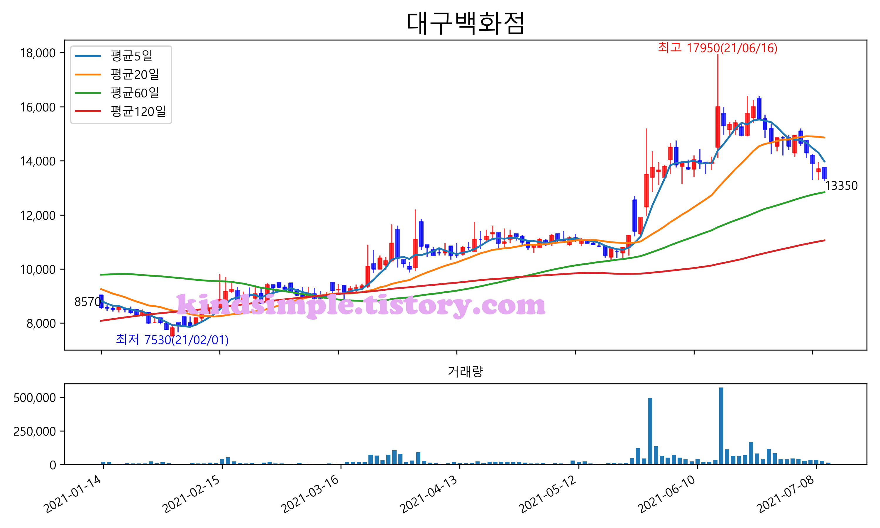최근 6개월간 캔들차트 및 이동평균선입니다.