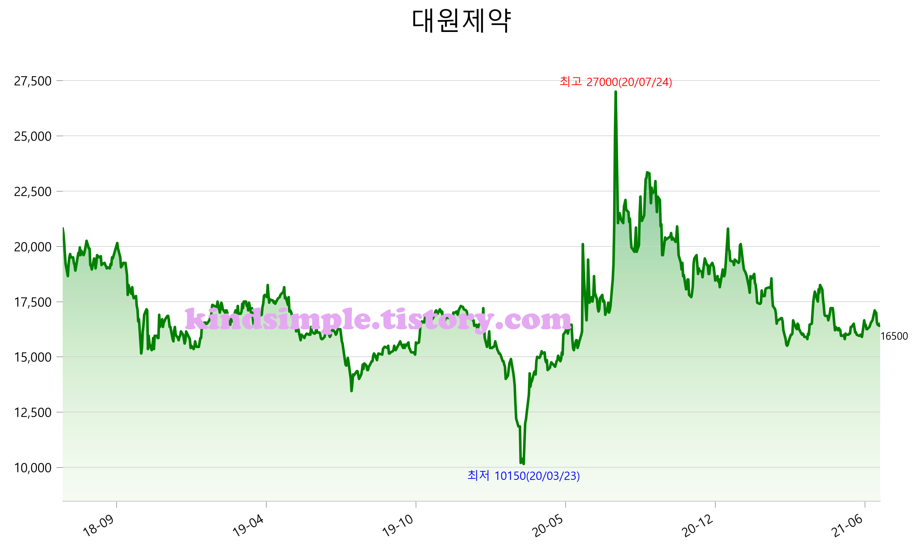7월 13일 기준 주가는 16,500원 입니다. 아래는 최근 3년간의 주가흐름입니다.