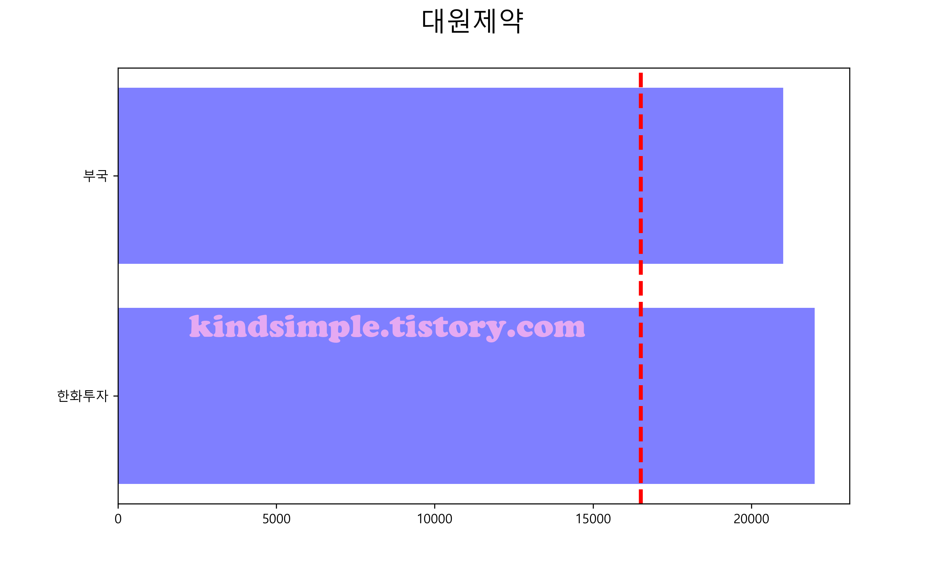 아래 그래프의 빨간색 점선이 현재 주가입니다.