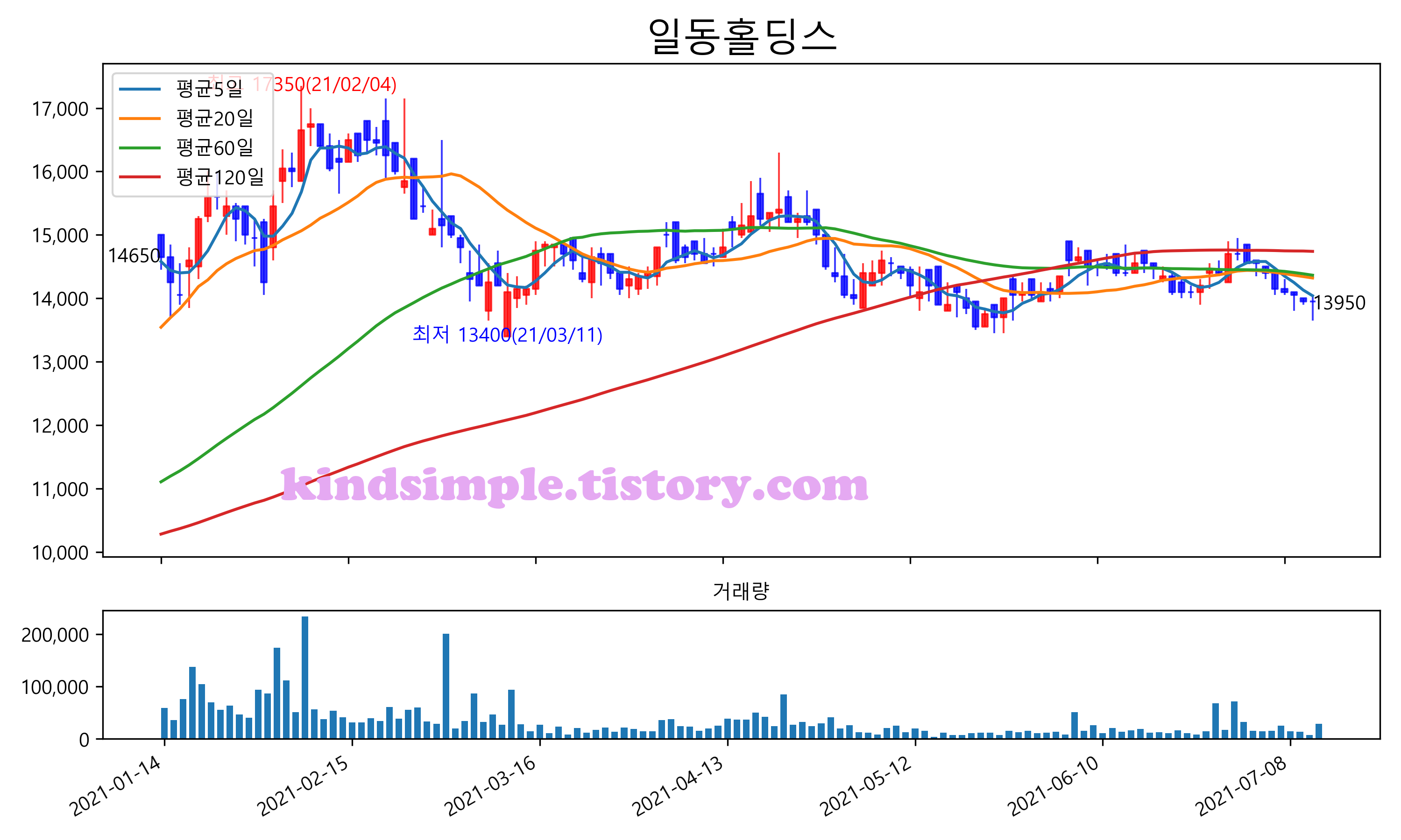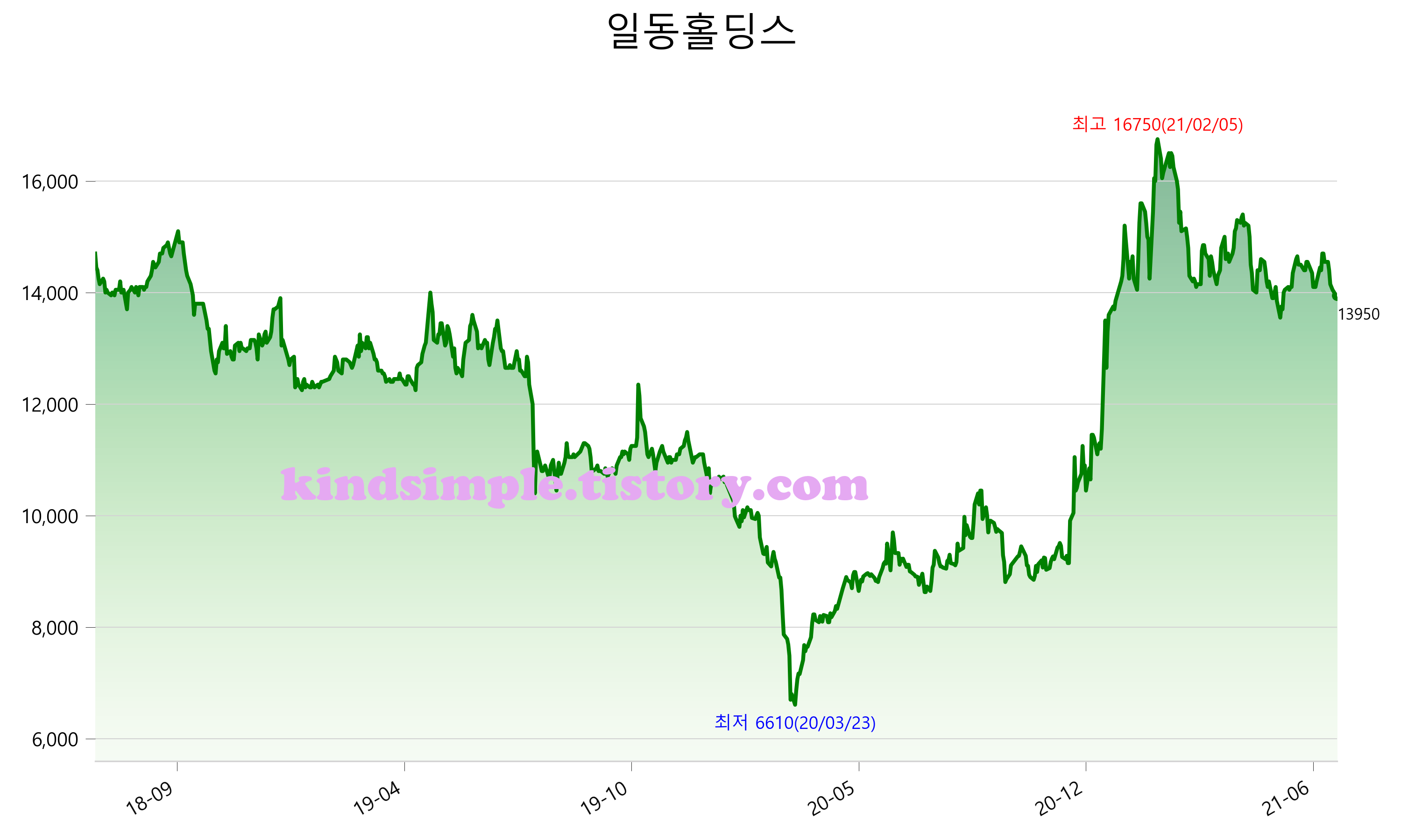 7월 13일 기준 주가는 13,950원 입니다. 아래는 최근 3년간의 주가흐름입니다.