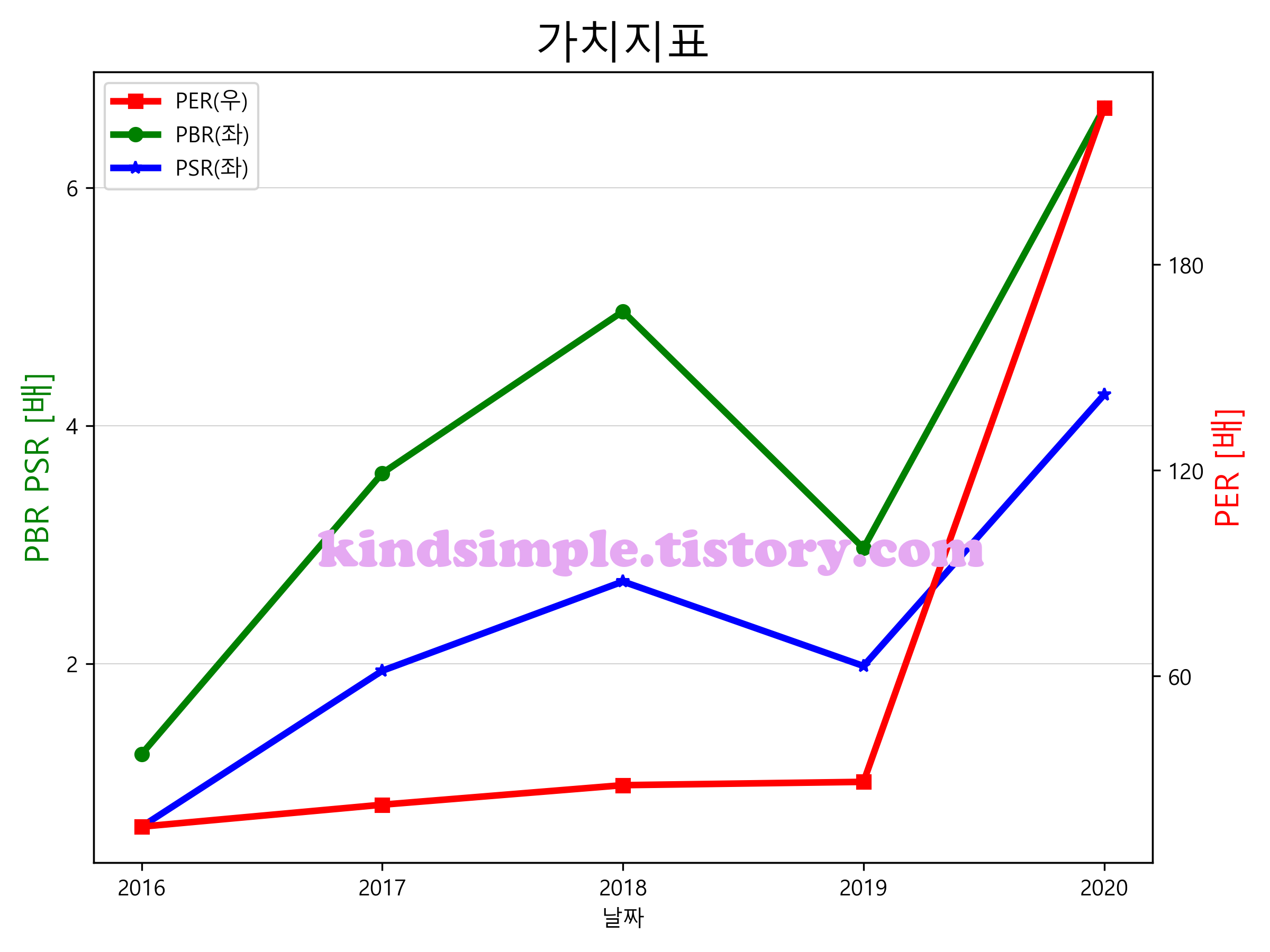 - PER : 193.51배, 동일업종 PER : 23.47배