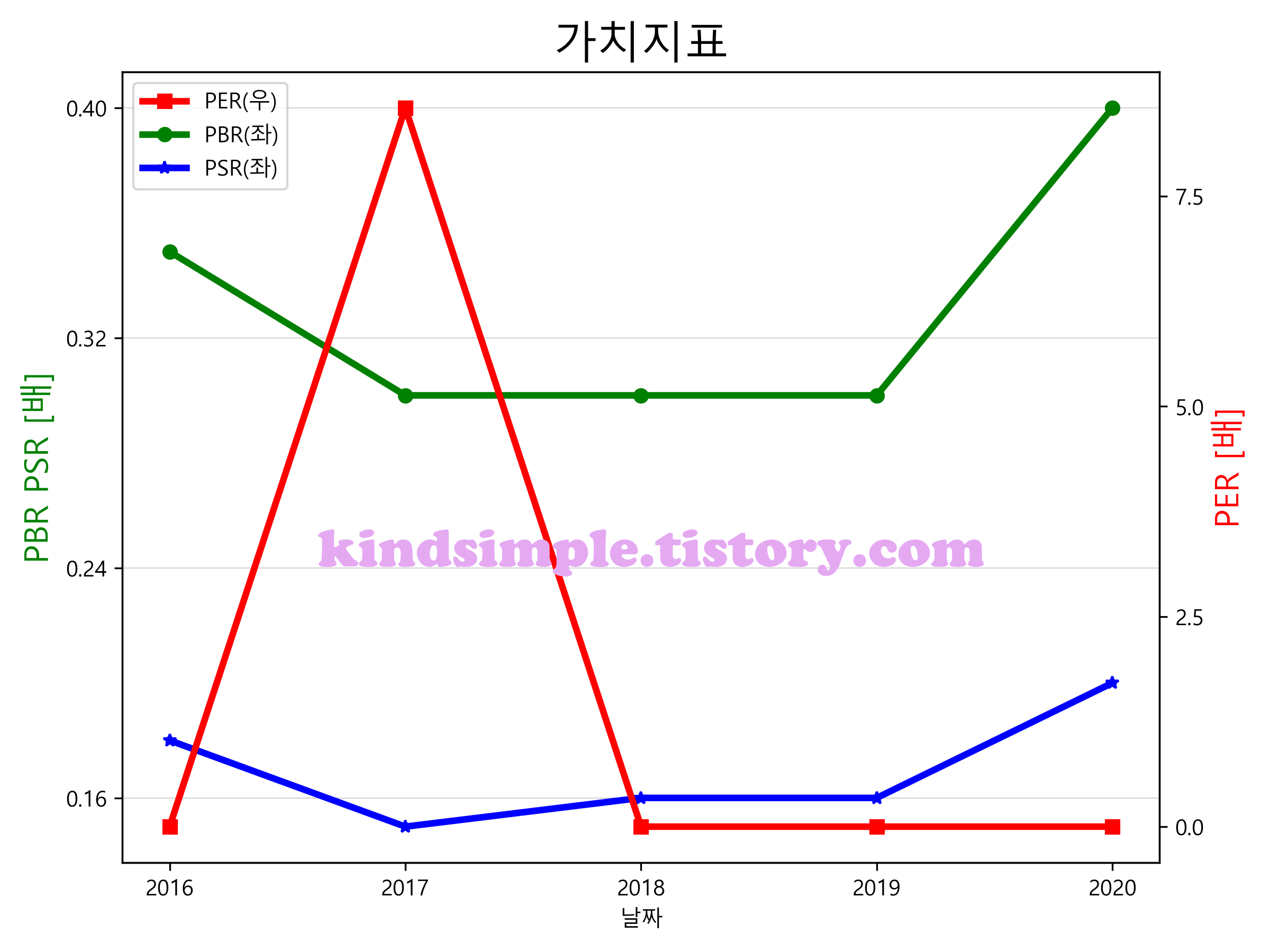 한국전자홀딩스의 PER, PBR, PSR입니다.