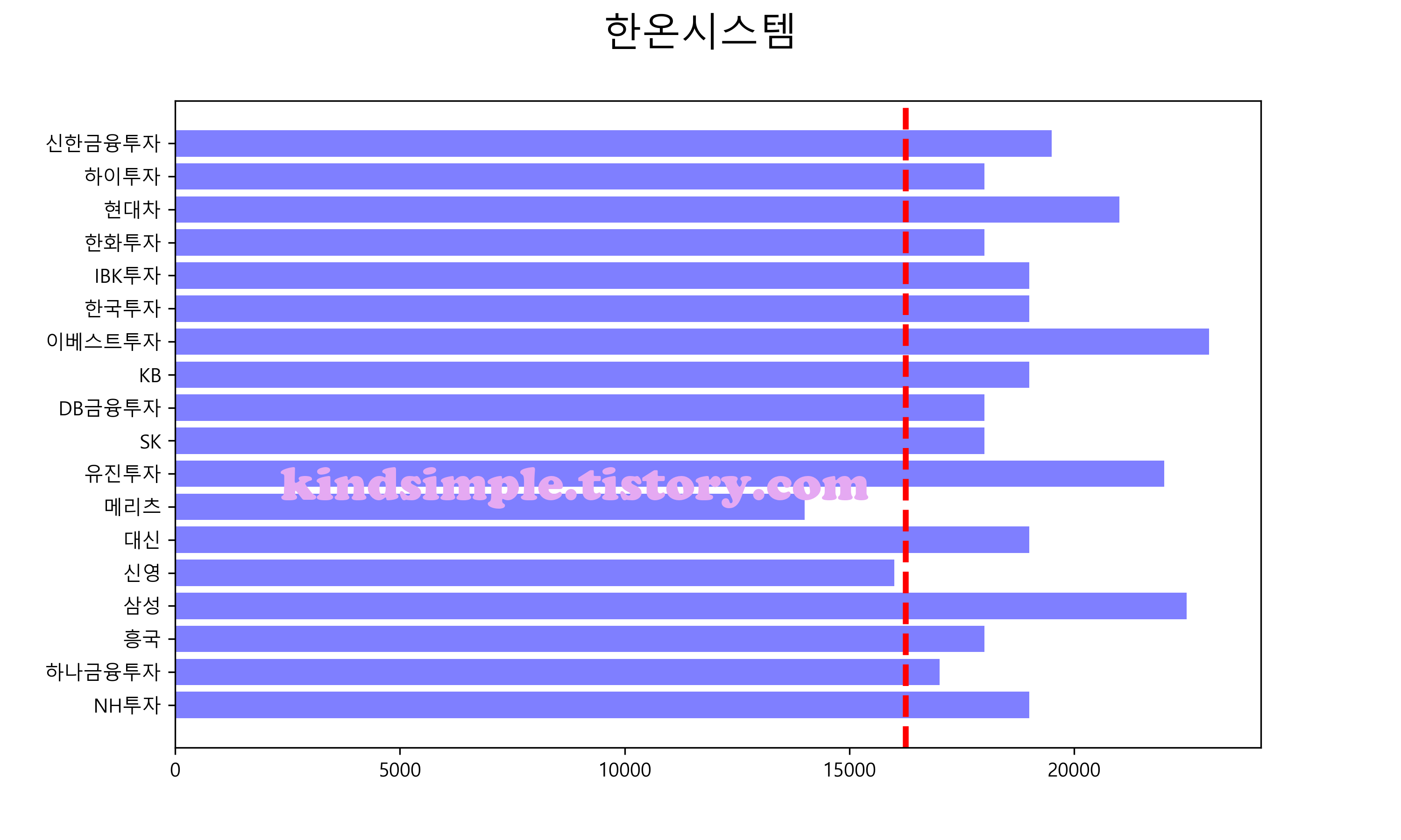아래 그래프의 빨간색 점선이 현재 주가입니다.