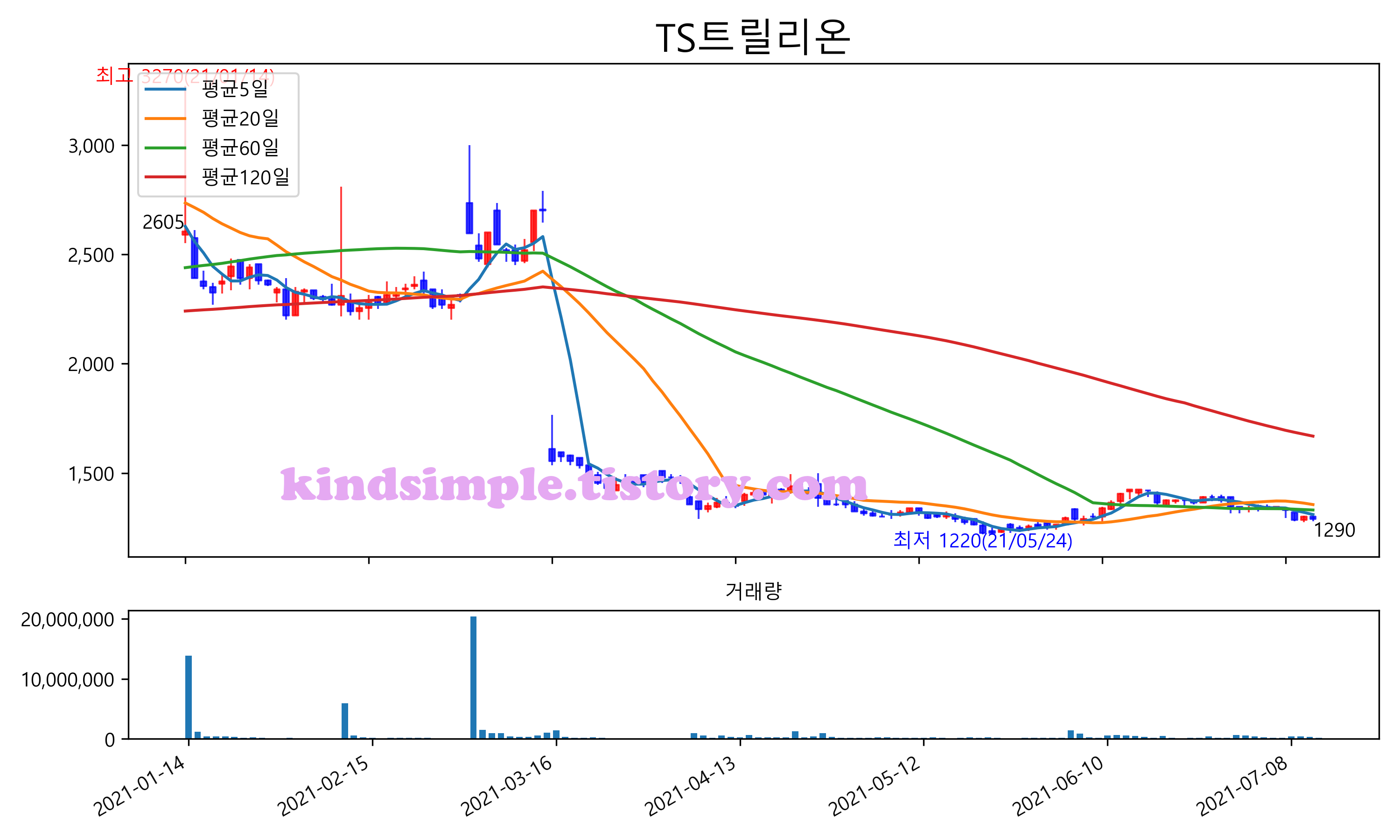 7월 13일 기준 주가는 1,290원 입니다. 아래는 최근 3년간의 주가흐름입니다.