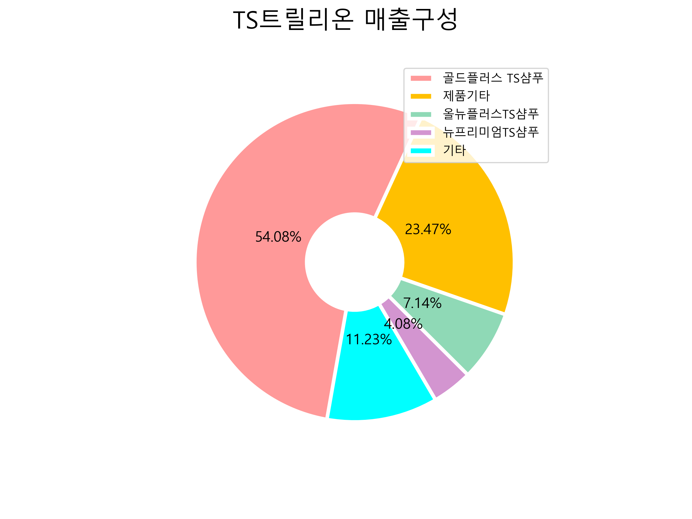 - 3대 홈쇼핑사에서 제공한 2019년 이미용 히트상품 분석자료에서 탈모샴푸 부문과 일반 샴푸 부문에서 TS샴푸가 1위를 차지함.