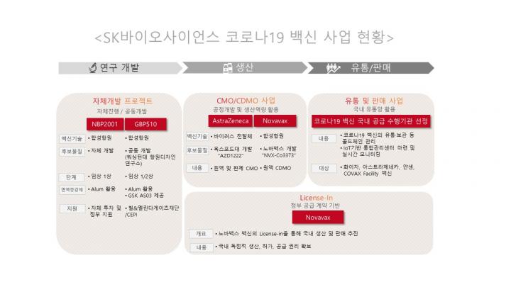 SK바이오사이언스 사업현황입니다.