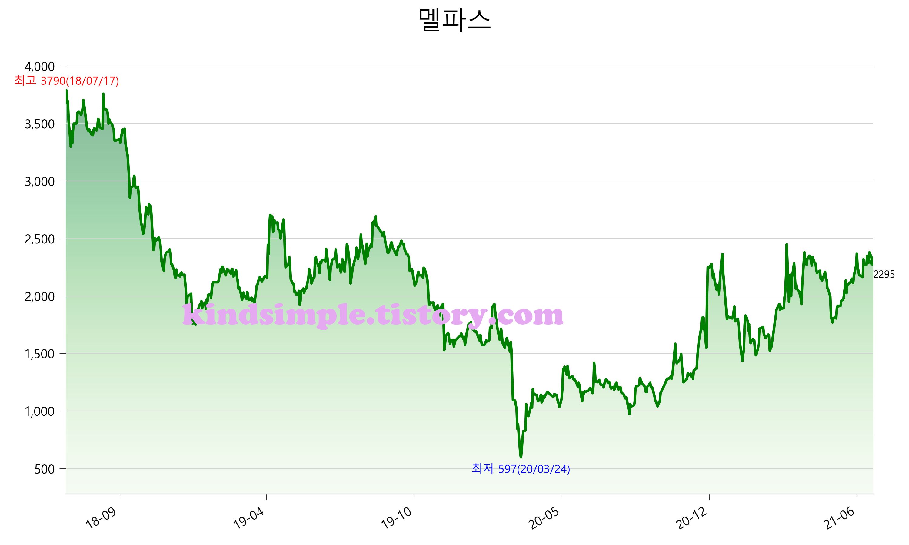 7월 14일 기준 주가는 2,295원 입니다. 아래는 최근 3년간의 주가흐름입니다.