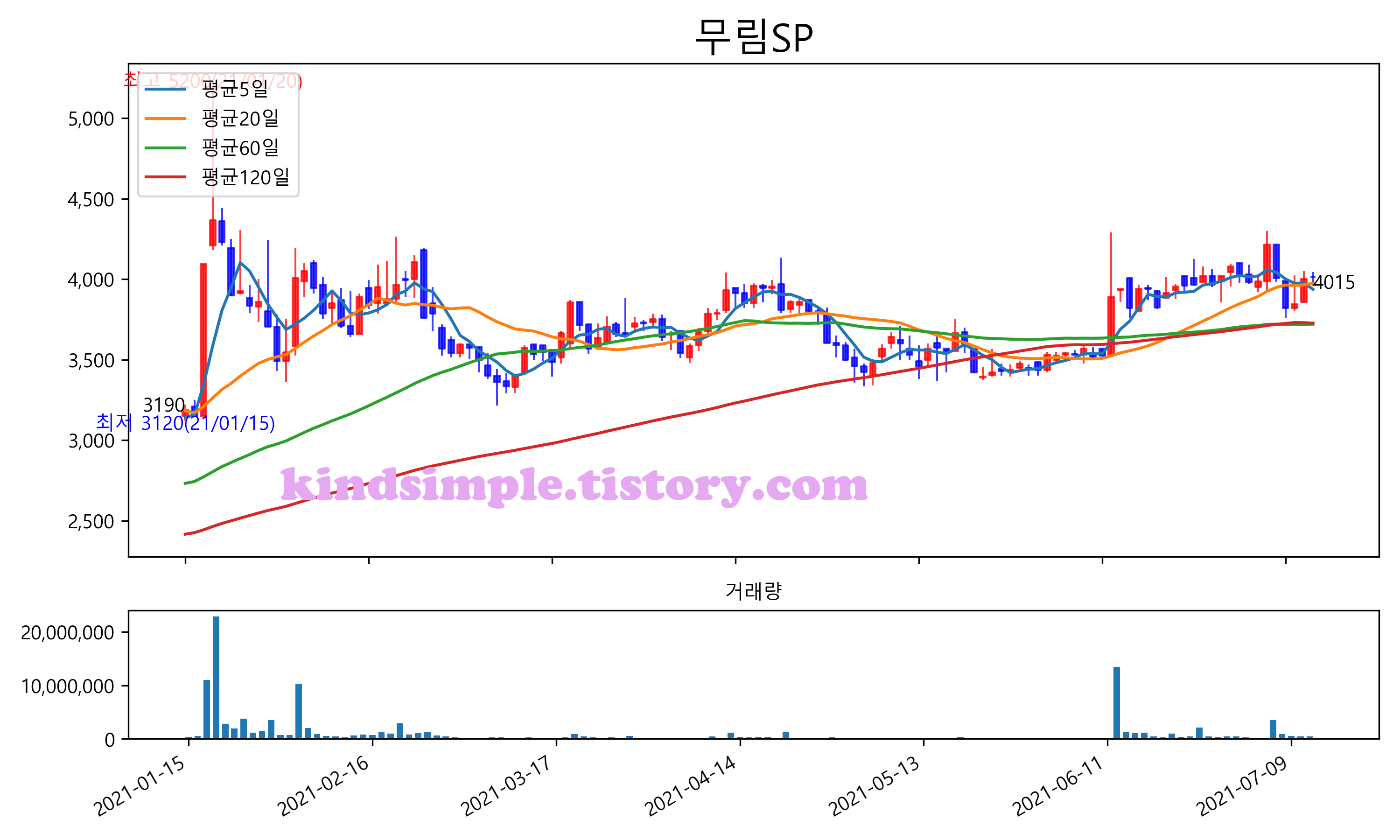 최근 6개월간 캔들차트 및 이동평균선입니다.