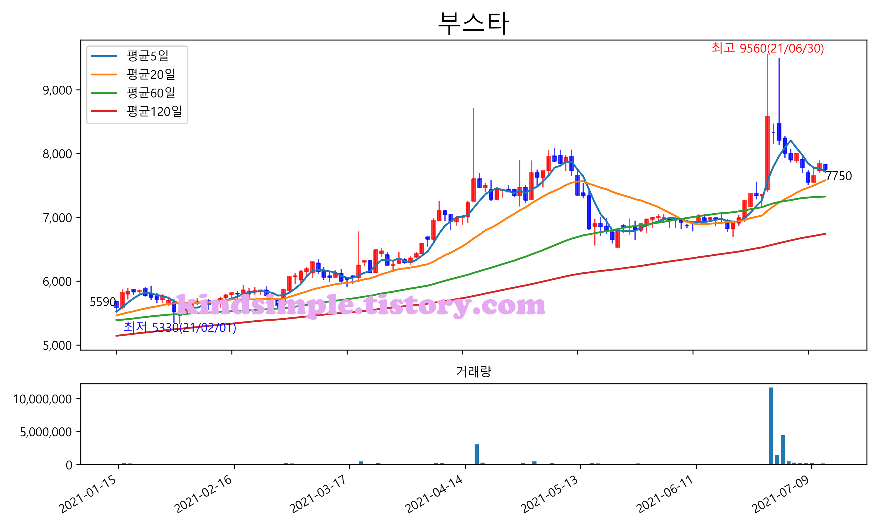 최근 6개월간 캔들차트 및 이동평균선입니다.