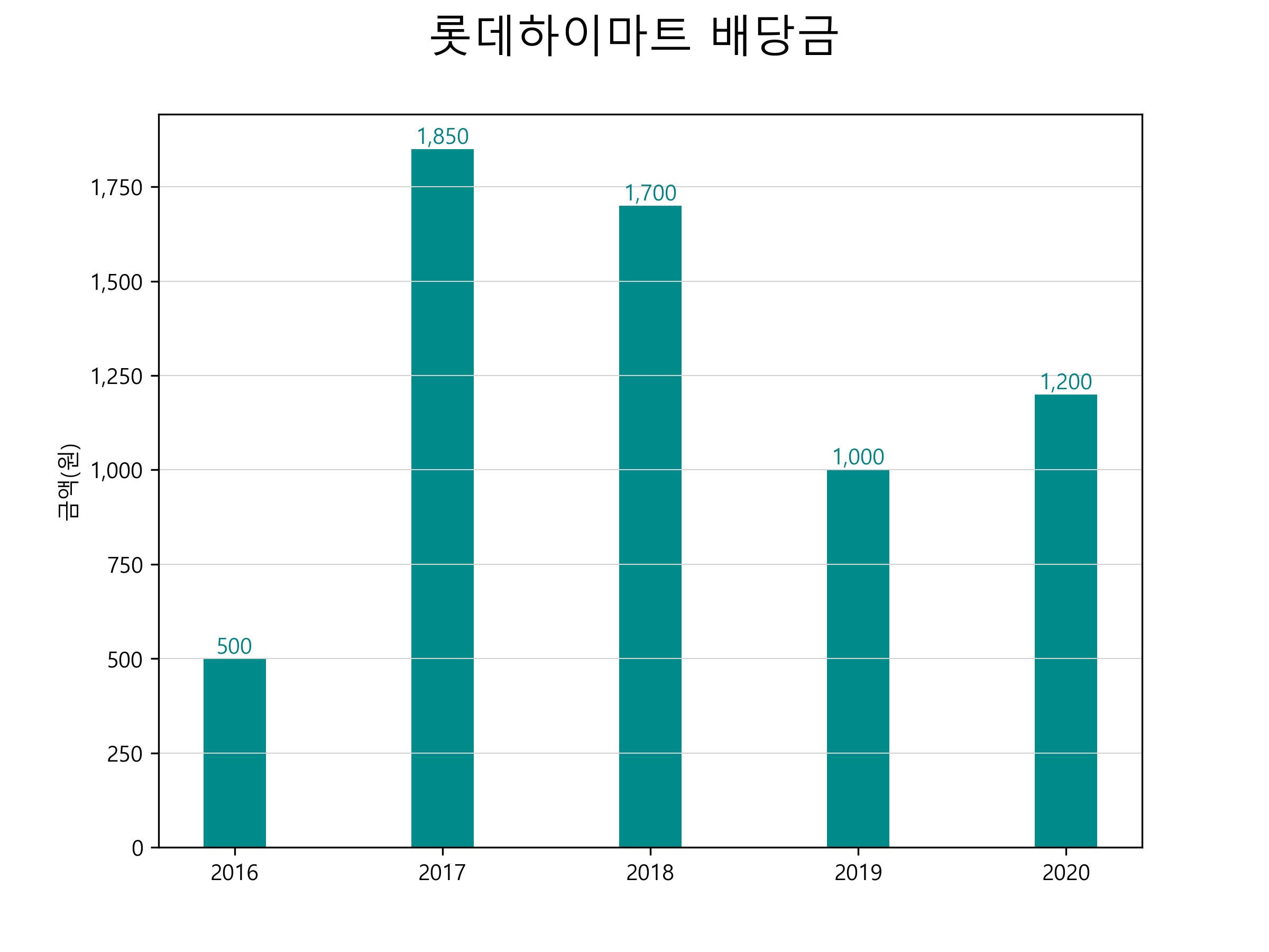 | 배당금 | 500 | 1,850 | 1,700 | 1,000 | 1,200 |