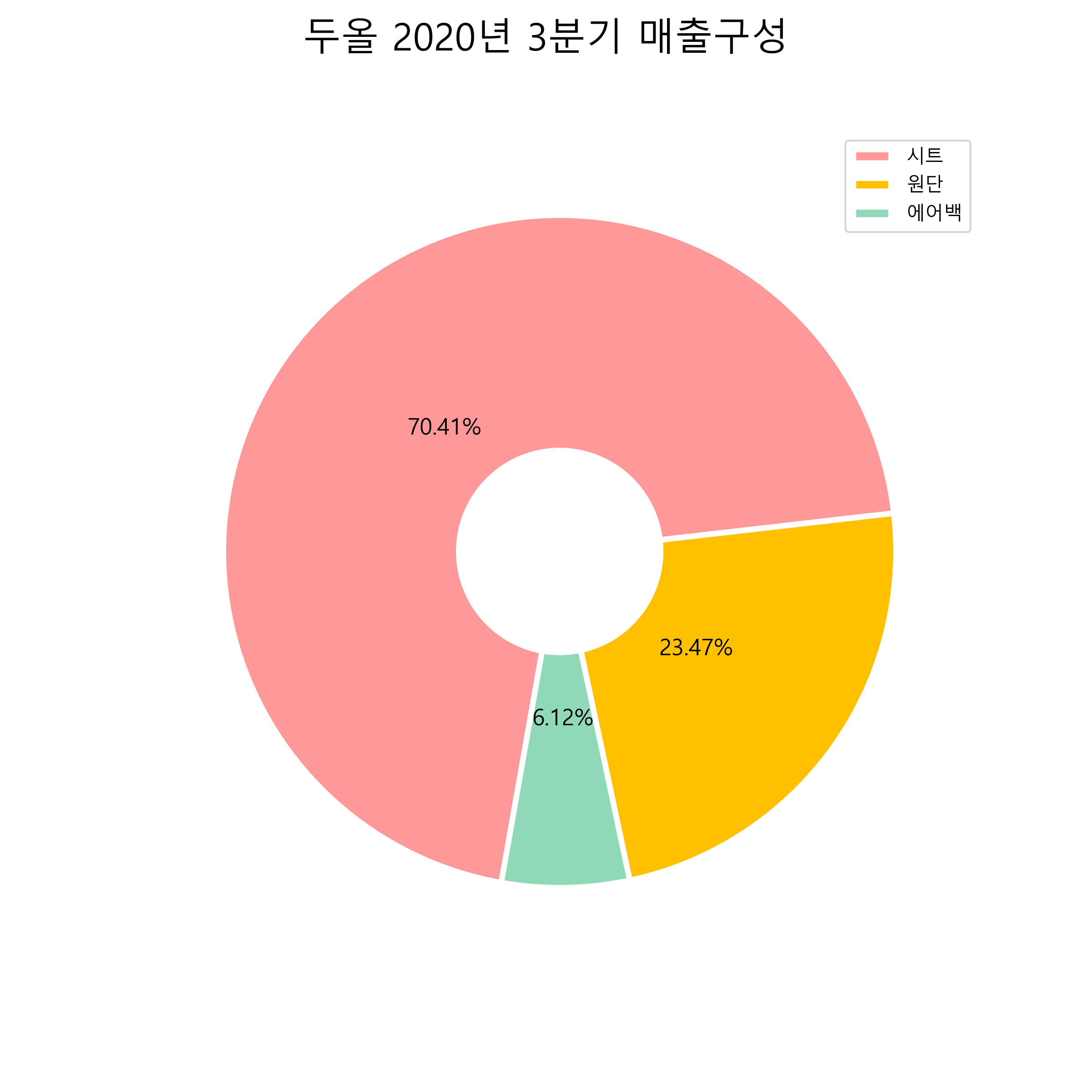 - 1983년 설립된 자동차용 내장재(원단, 시트커버링, 에어백쿠션) 제조의 사업을 영위함. 2018년 중 계열회사인 두올산업과 두올물산을 매각함.