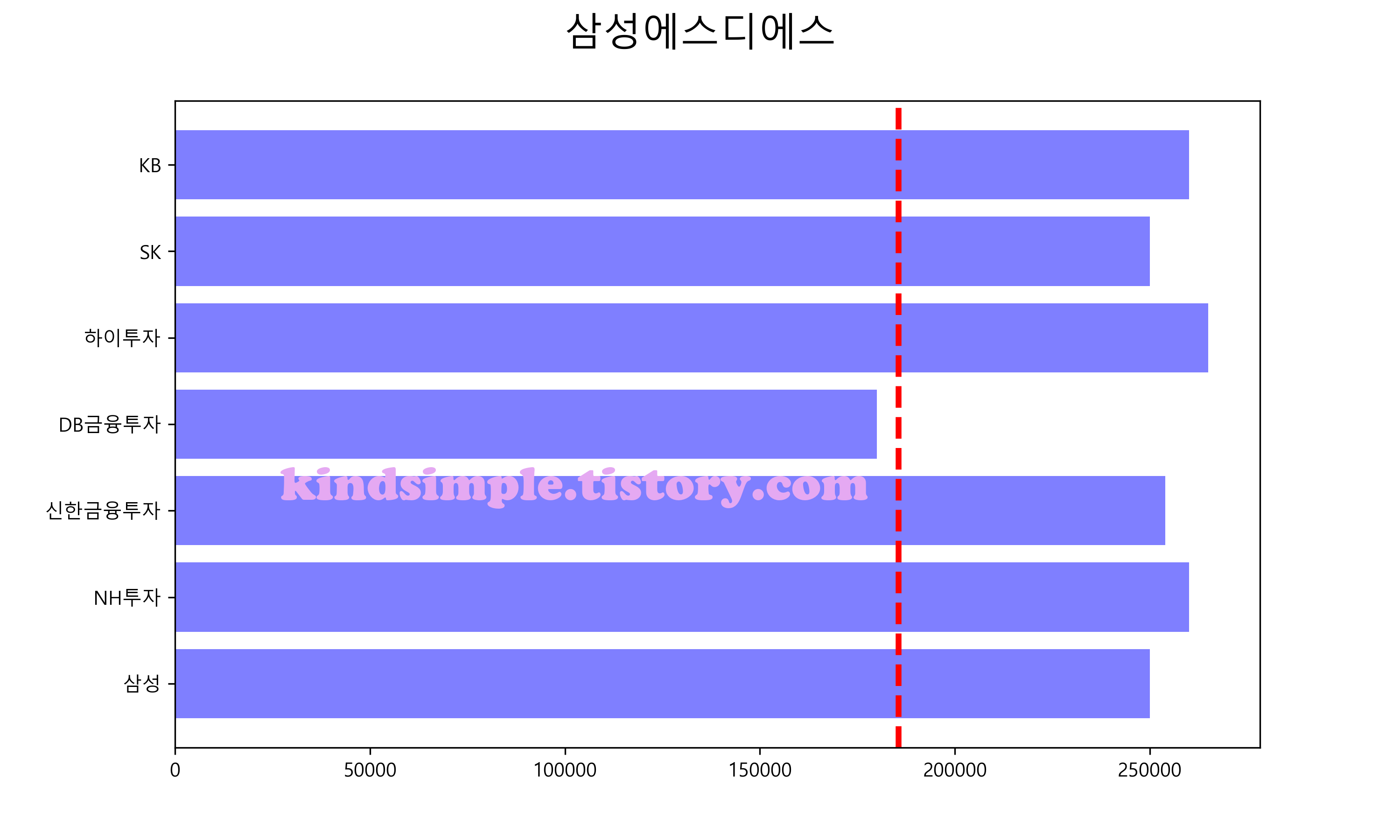 아래 그래프의 빨간색 점선이 현재 주가입니다.