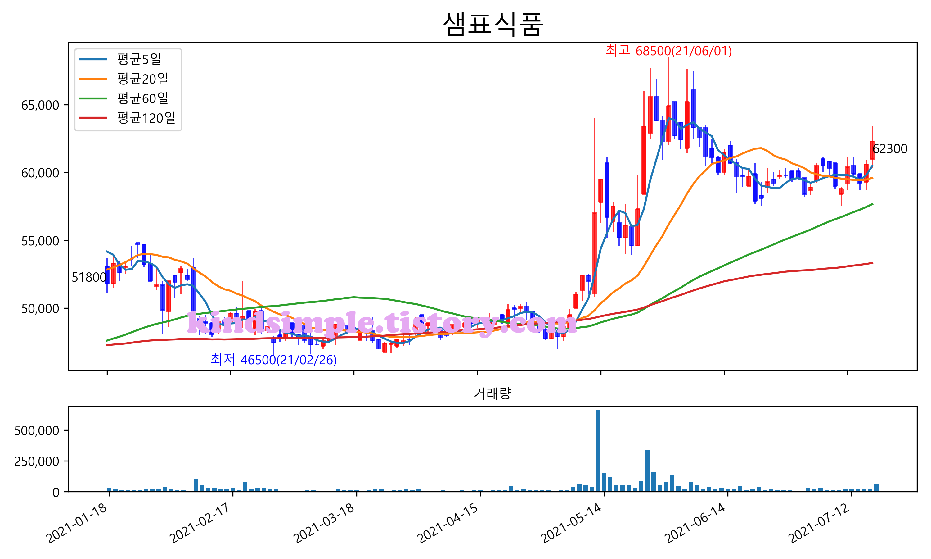 최근 6개월간 캔들차트 및 이동평균선입니다.