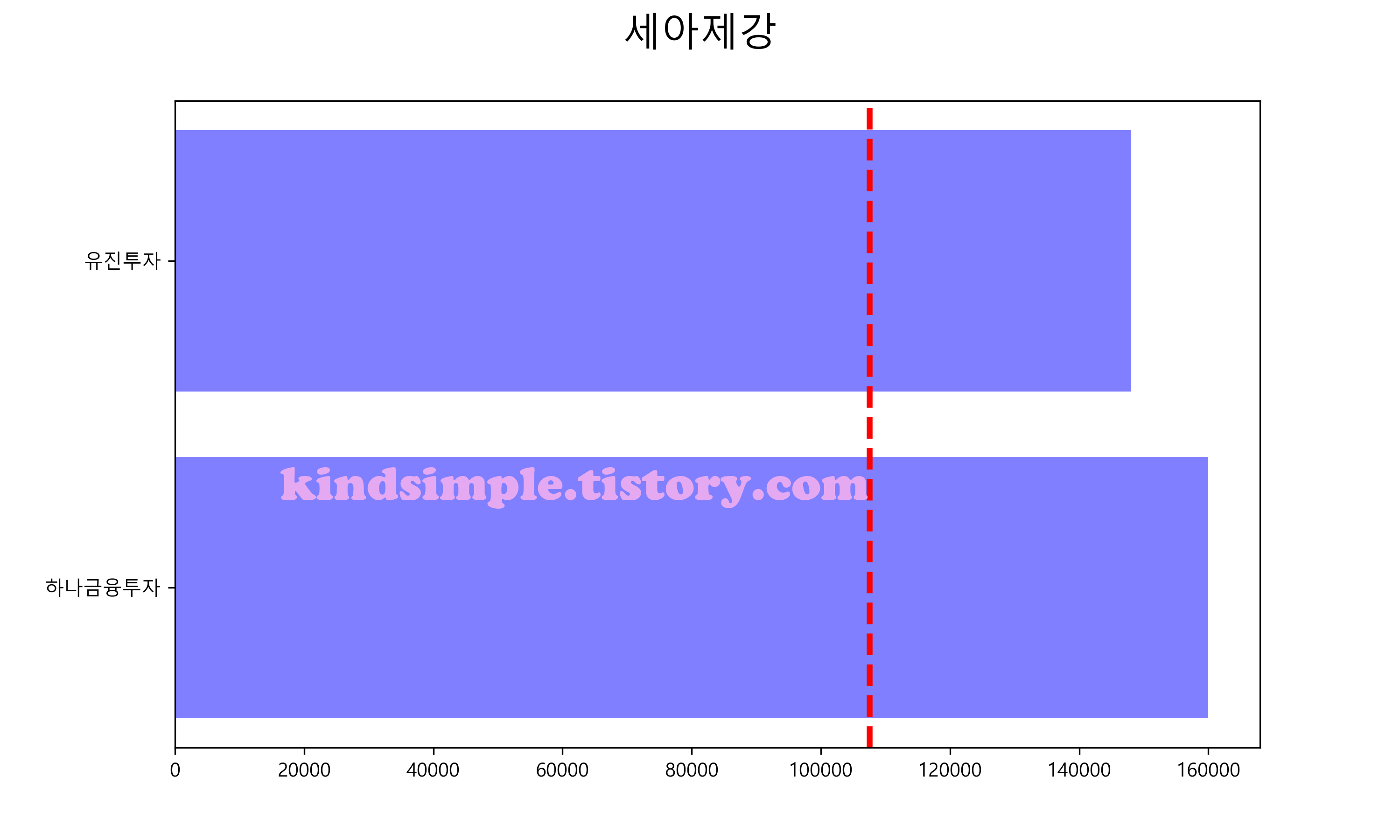 아래 그래프의 빨간색 점선이 현재 주가입니다.