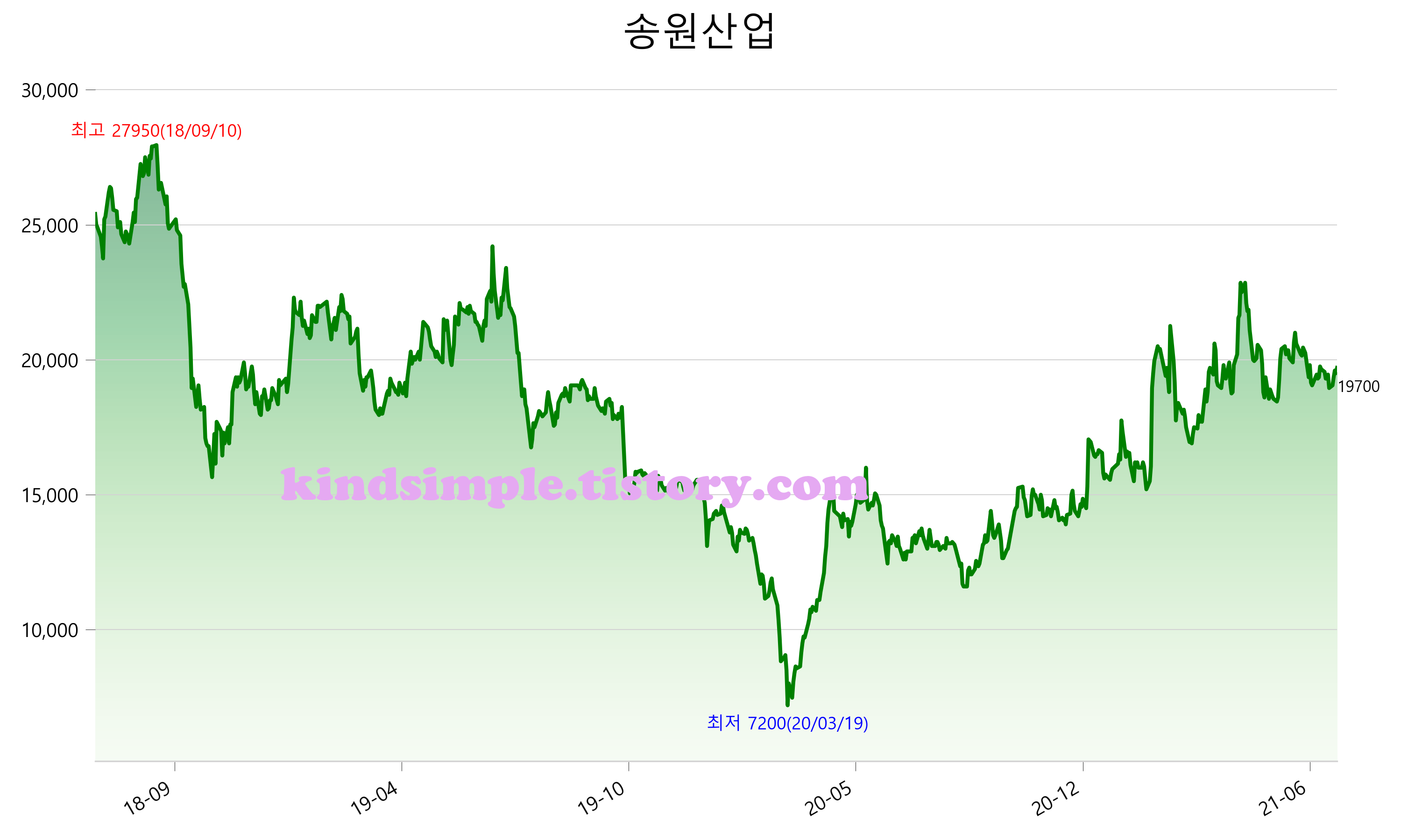 7월 16일 기준 주가는 19,700원 입니다. 아래는 최근 3년간의 주가흐름입니다.