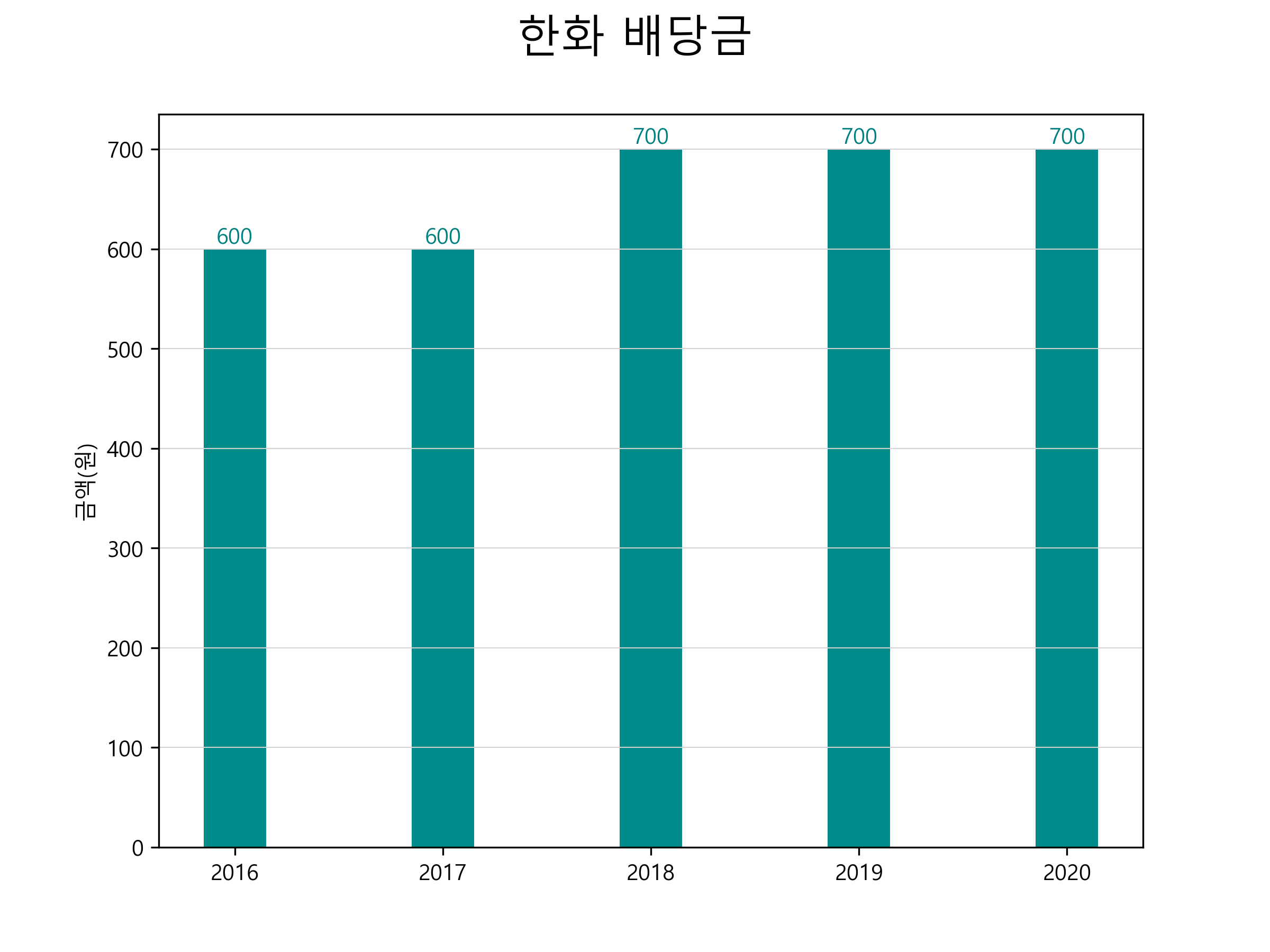 | 배당금 | 600 | 600 | 700 | 700 | 700 |