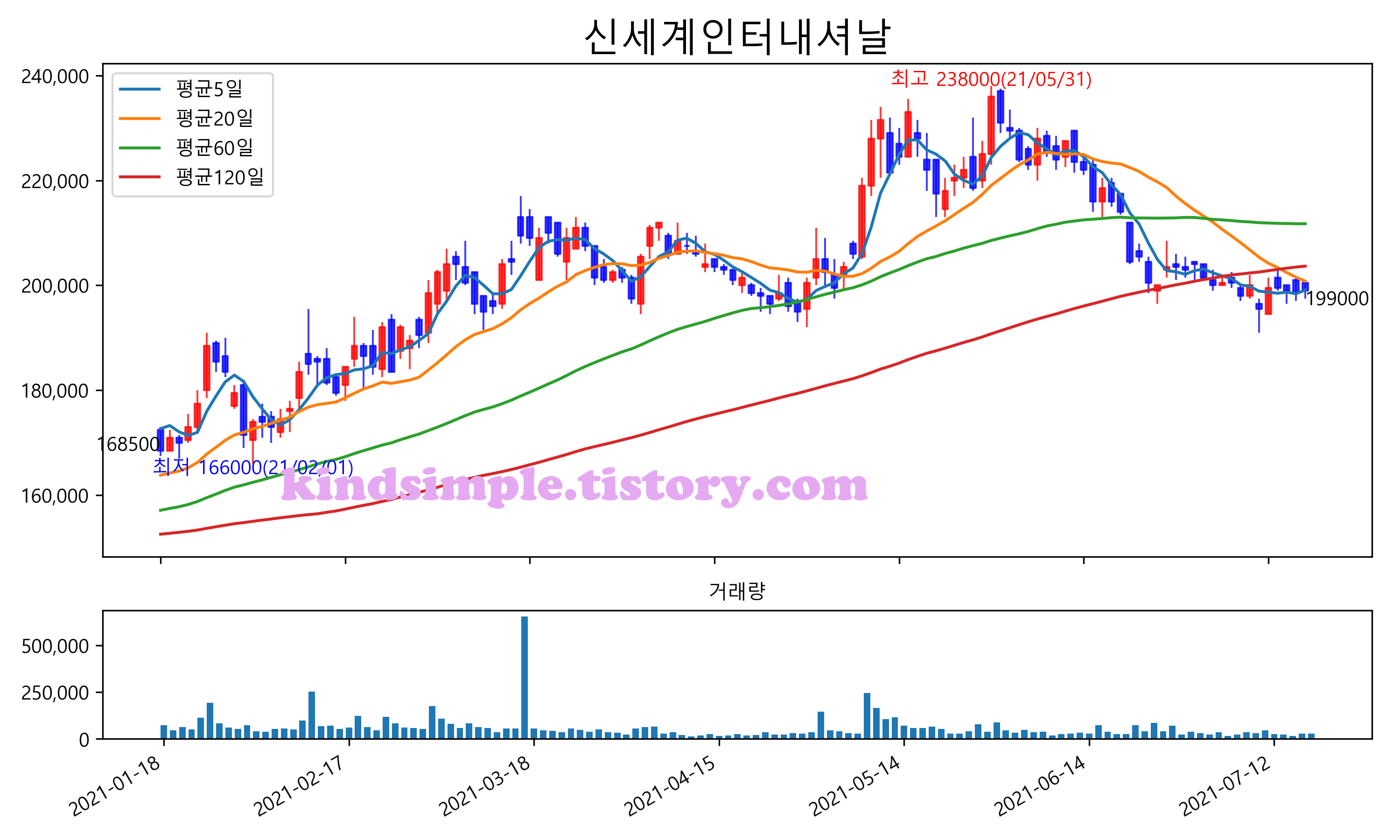 최근 6개월간 캔들차트 및 이동평균선입니다.