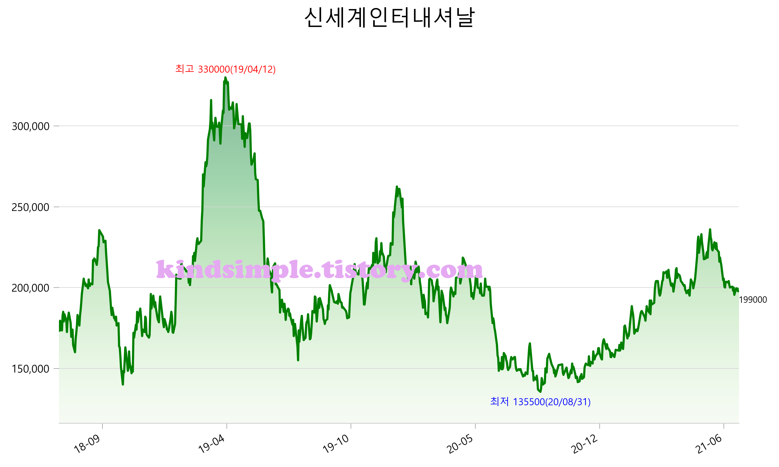 7월 16일 기준 주가는 199,000원 입니다. 아래는 최근 3년간의 주가흐름입니다.