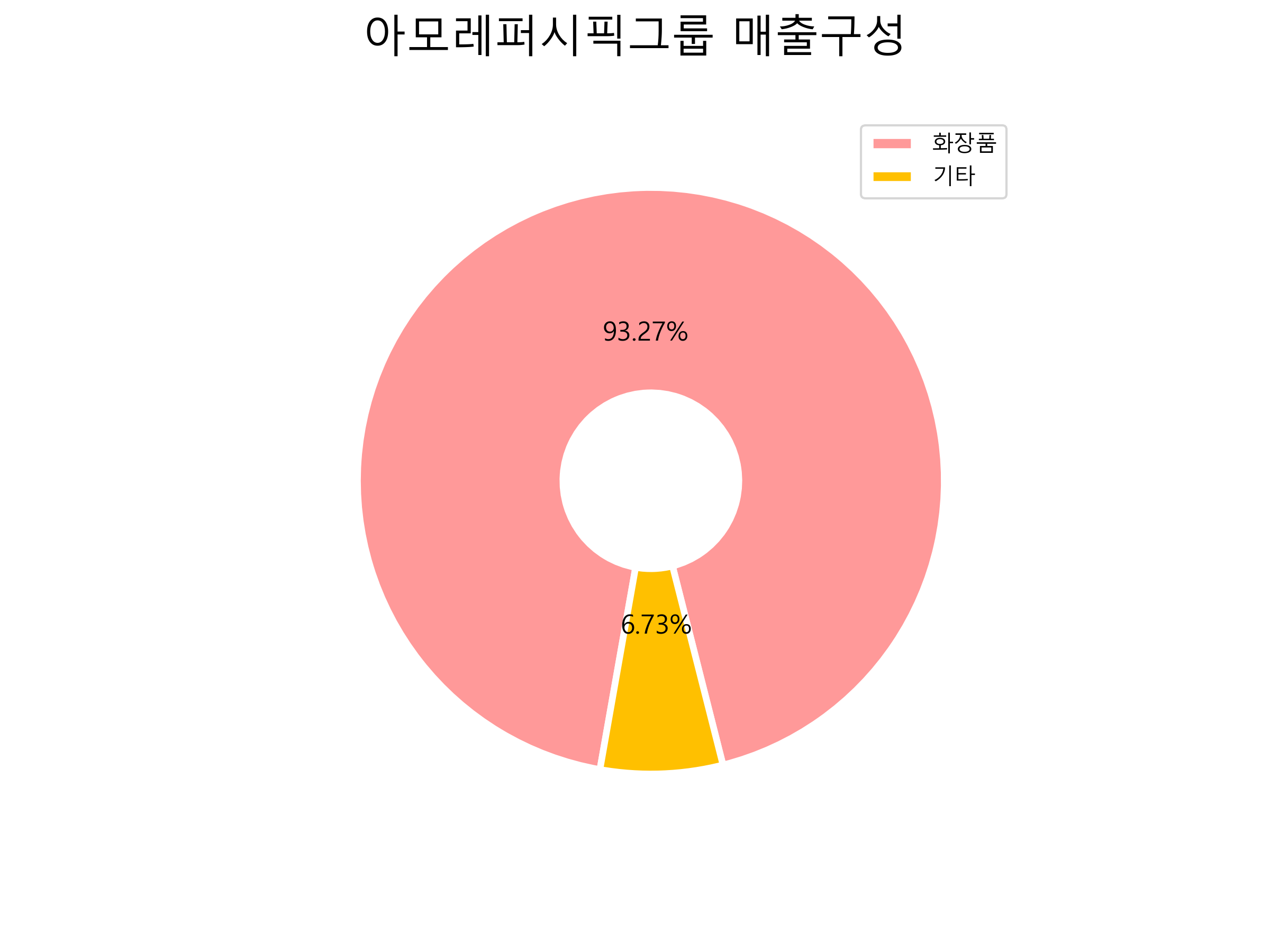 - 지주회사인 연결 대상 법인으로 아모레퍼시픽과 화장품 판매사업을 영위하는 이니스프리, 에뛰드, 에스쁘아 등.