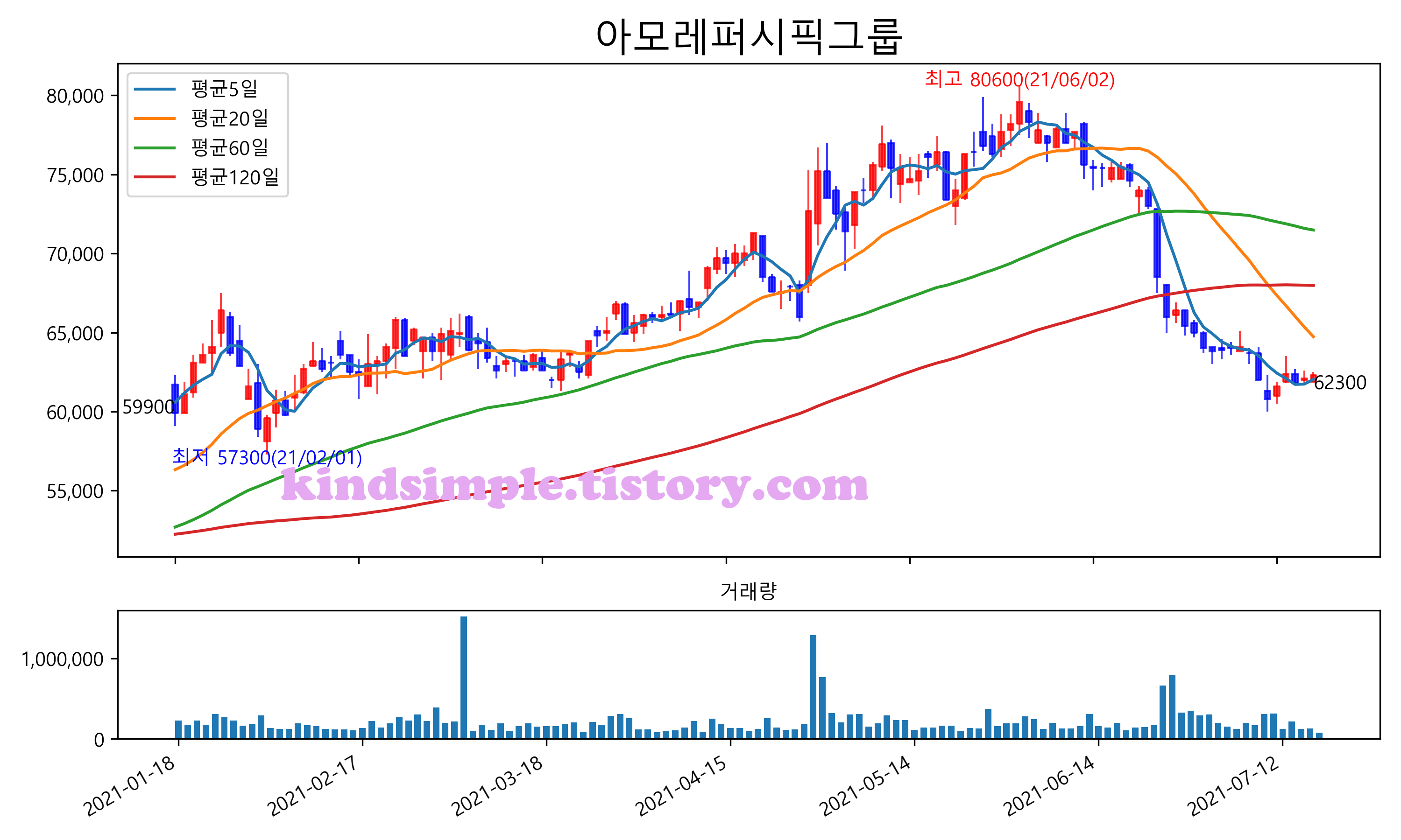최근 6개월간 캔들차트 및 이동평균선입니다.