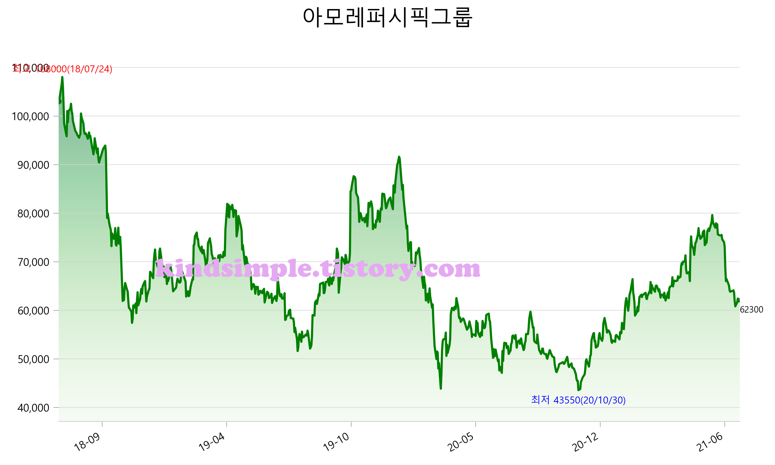 7월 16일 기준 주가는 62,300원 입니다. 아래는 최근 3년간의 주가흐름입니다.