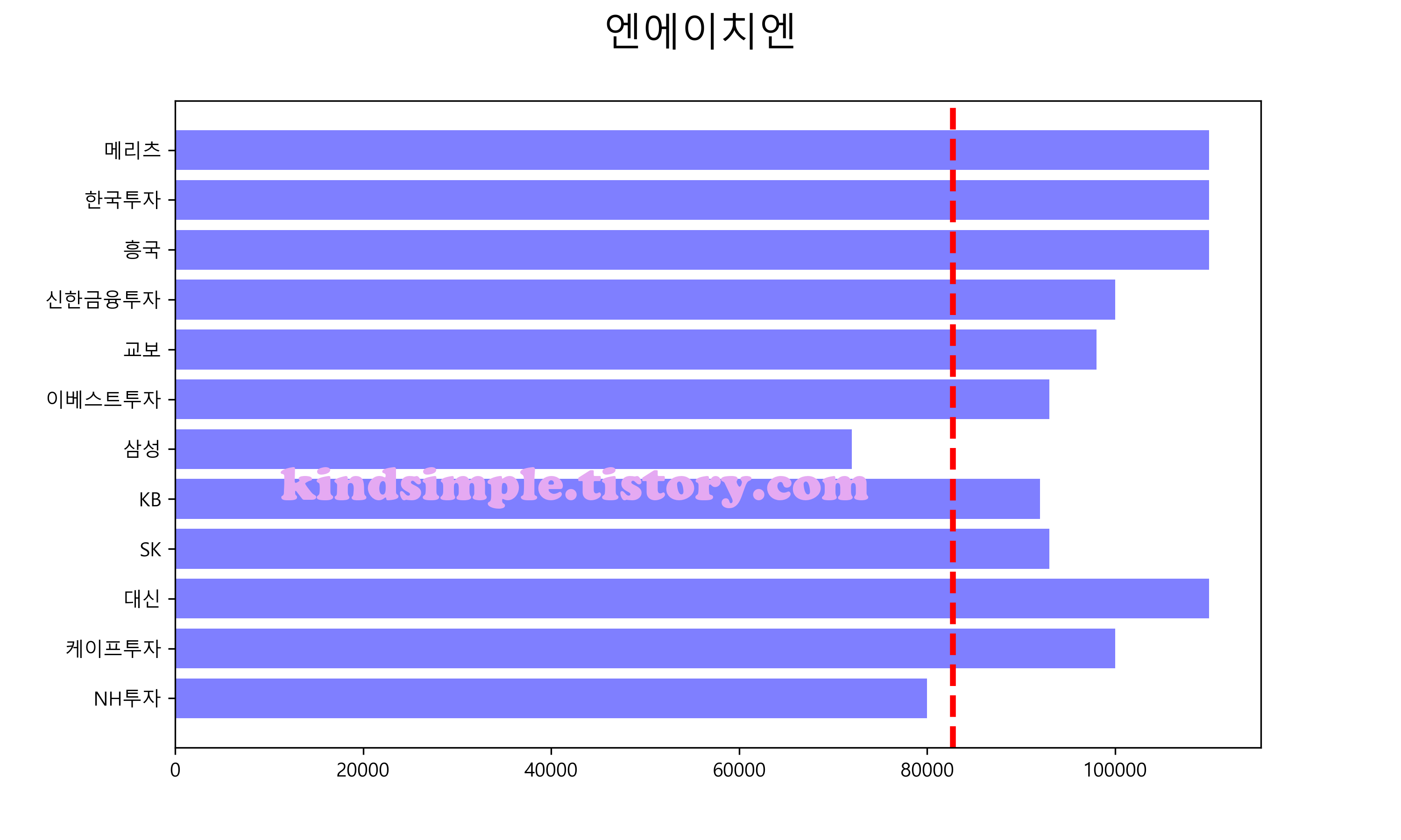 아래 그래프의 빨간색 점선이 현재 주가입니다.