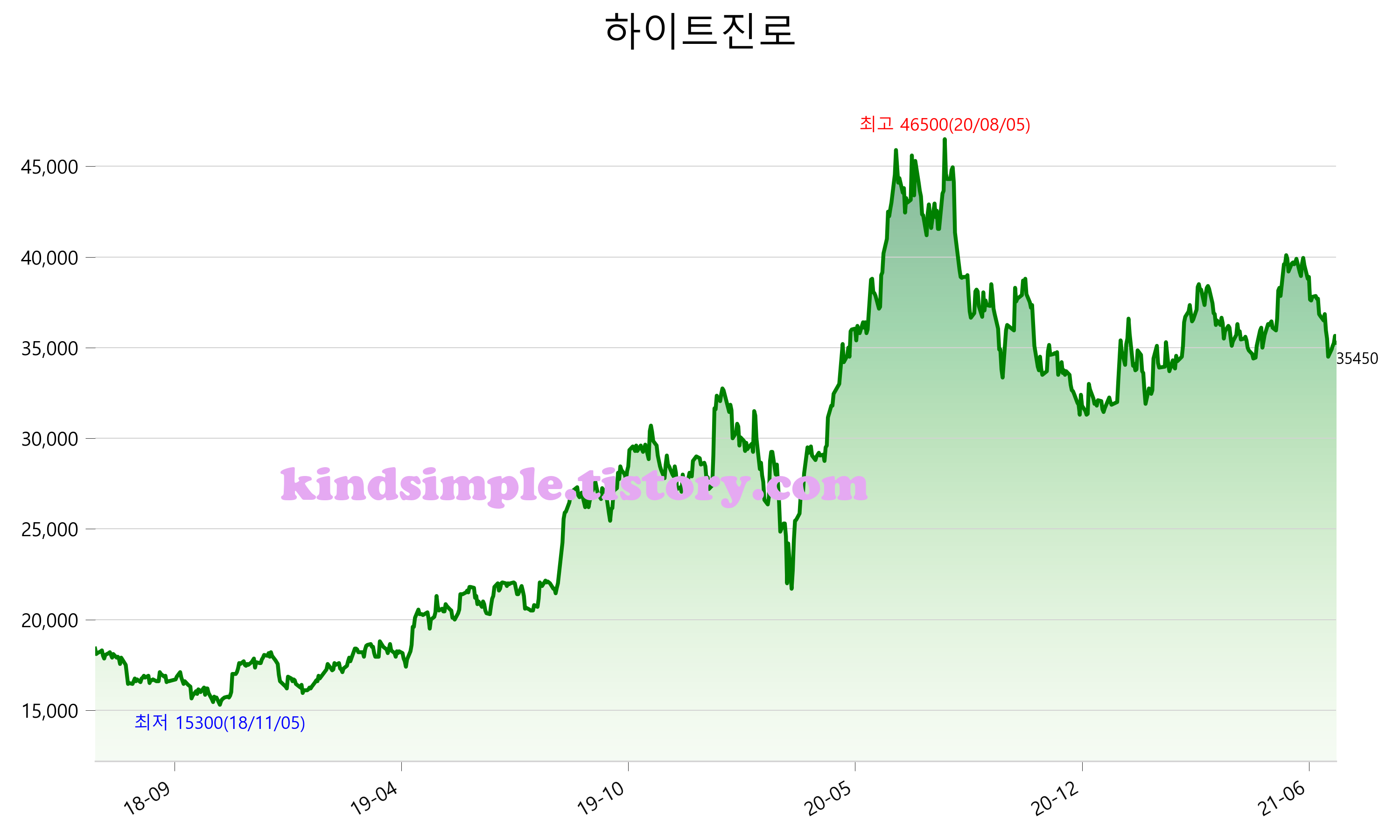 7월 16일 기준 주가는 35,450원 입니다. 아래는 최근 3년간의 주가흐름입니다.