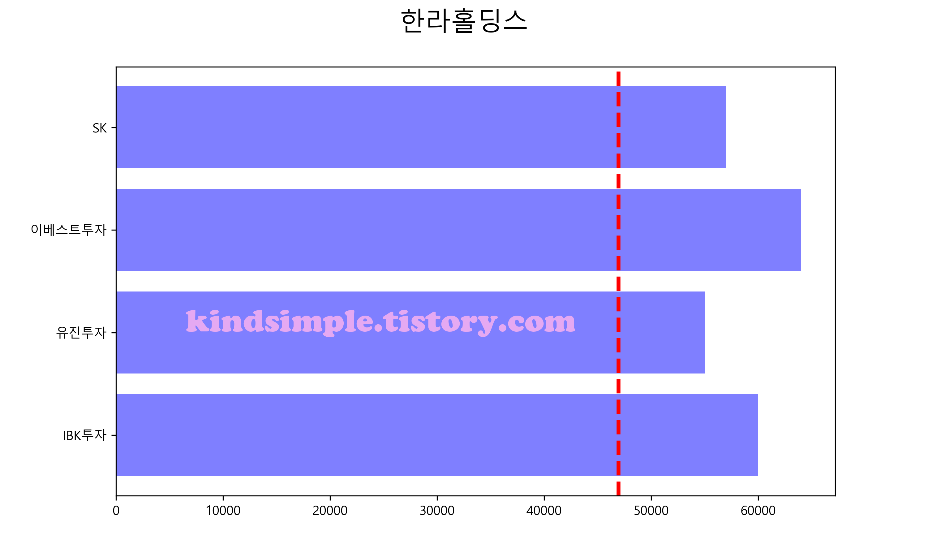 아래 그래프의 빨간색 점선이 현재 주가입니다.
