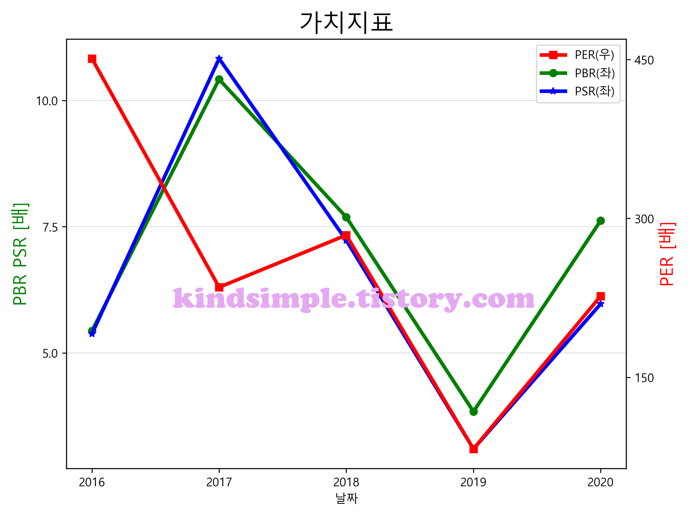 - PER : 196.59배, 동일업종 PER : 104.80배