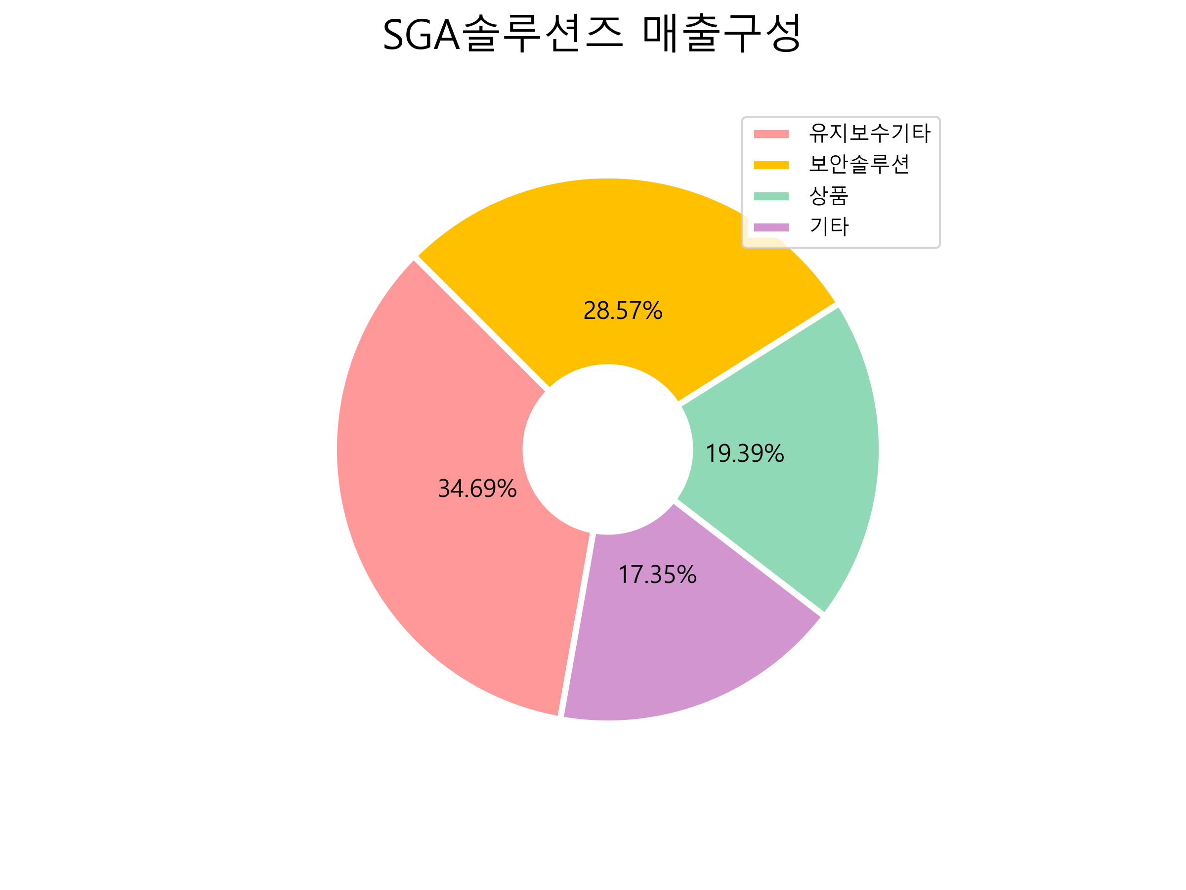 - 정보보안은 네트워크 보안 시스템 개발, 시스템보안 솔루션 개발 분야의 매출 비중이 높음.