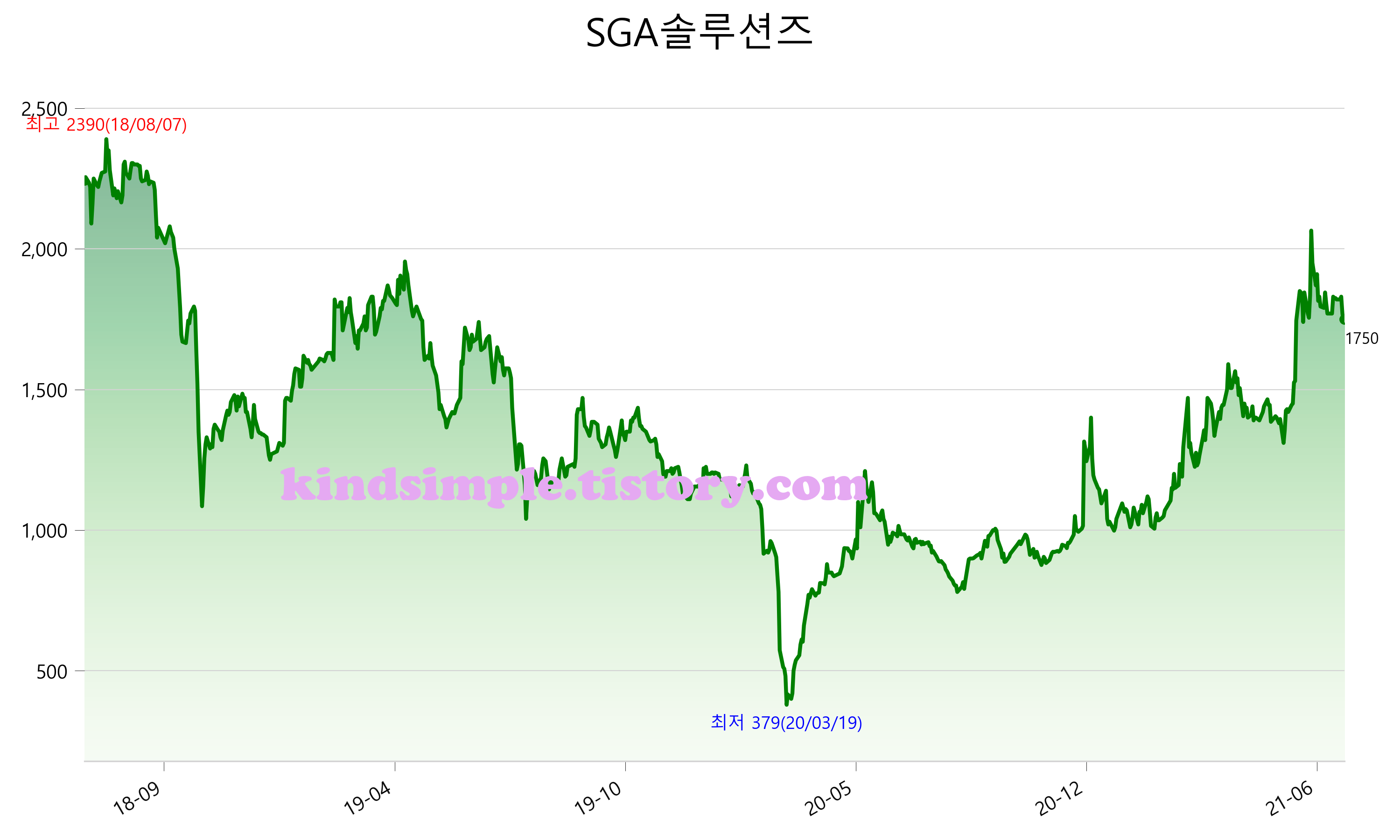 7월 17일 기준 주가는 1,750원 입니다. 아래는 최근 3년간의 주가흐름입니다.