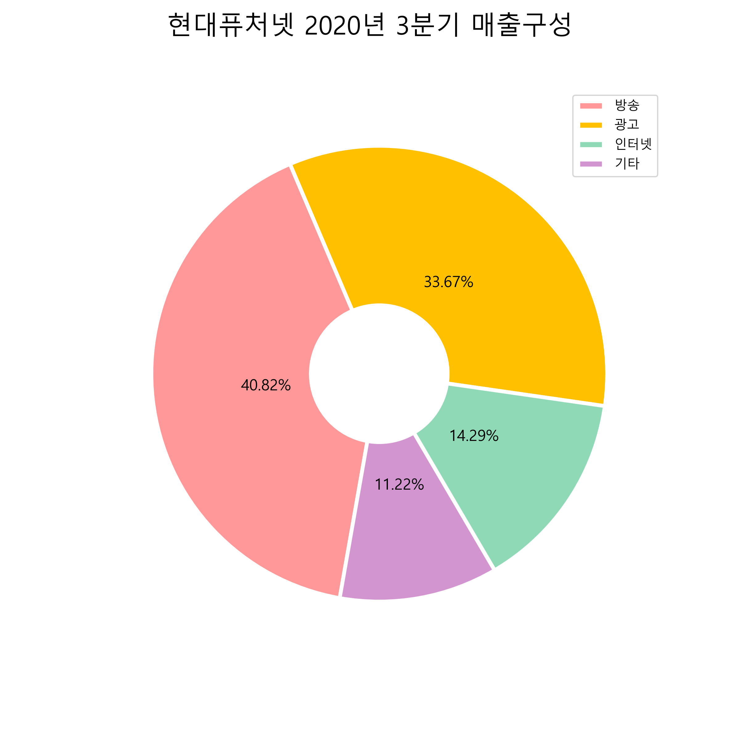 현대퓨처넷의 2020년 3분기 매출구성입니다.