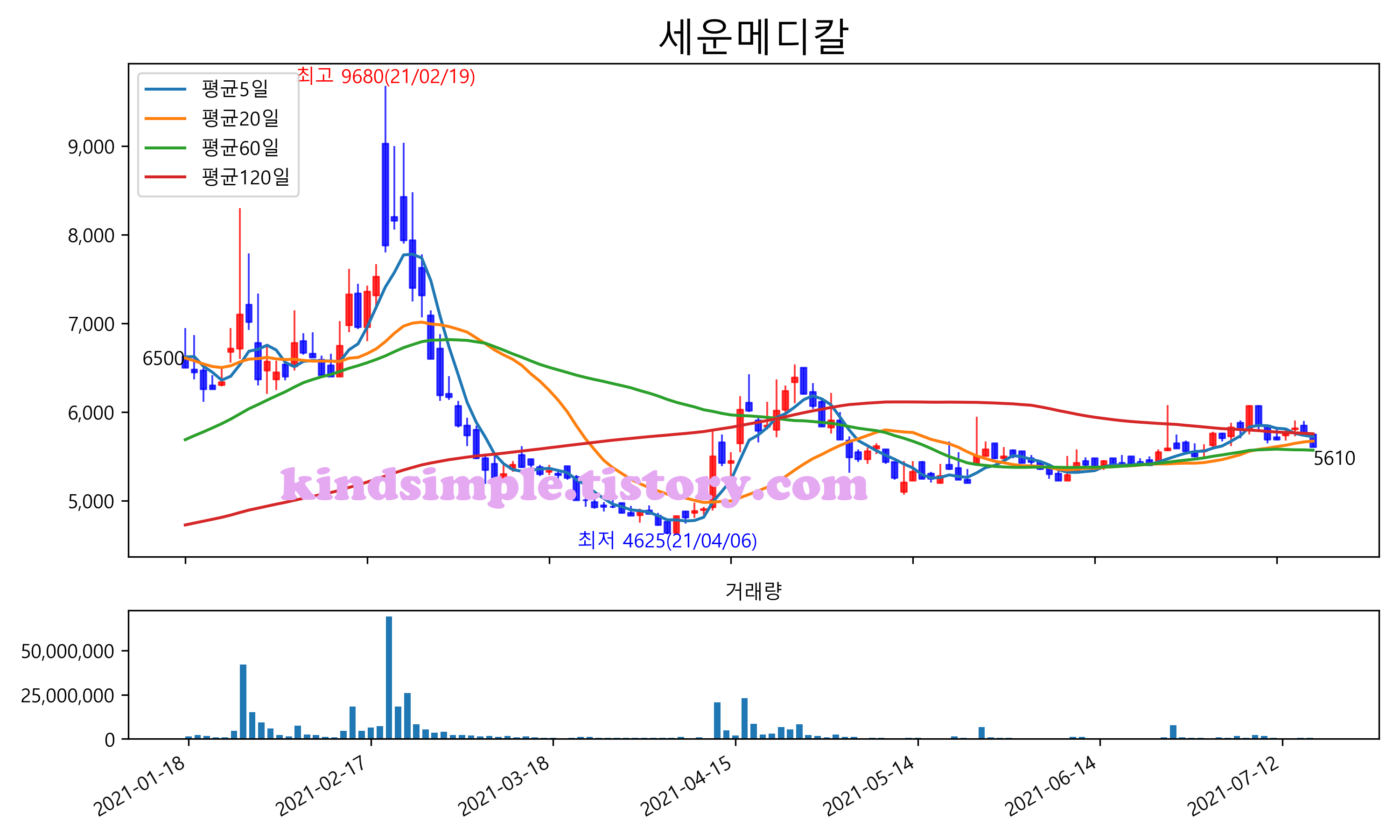 최근 6개월간 캔들차트 및 이동평균선입니다.