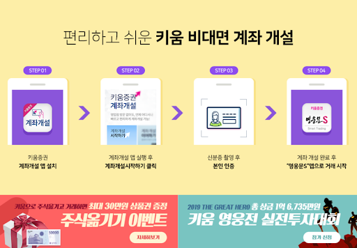 우리나라 주식시장 점유율 1위는 키움증권입니다. 키움증권의 계좌개설은 어플 또는 홈페이지에서 가능한데 어플로 비대면 계좌개설 방법에 대해서 알려드리겠습니다.