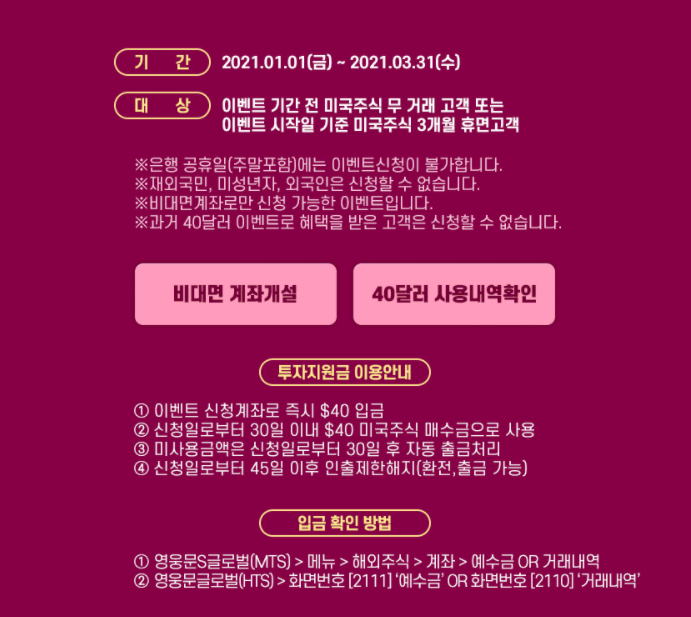 미국계좌로 주식 투자시 40달러를 받을 수 있습니다. 자세한 내용은 아래를 참고해 보세요.