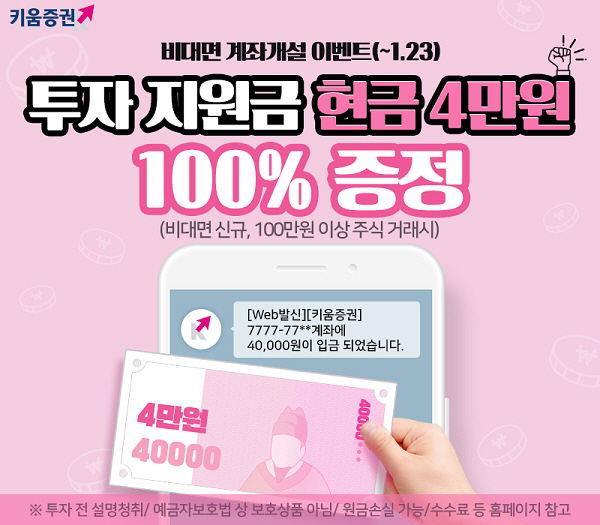 키움증권에서 계좌개설을 하면 4만원을 지급하는 이벤트를 실시합니다.