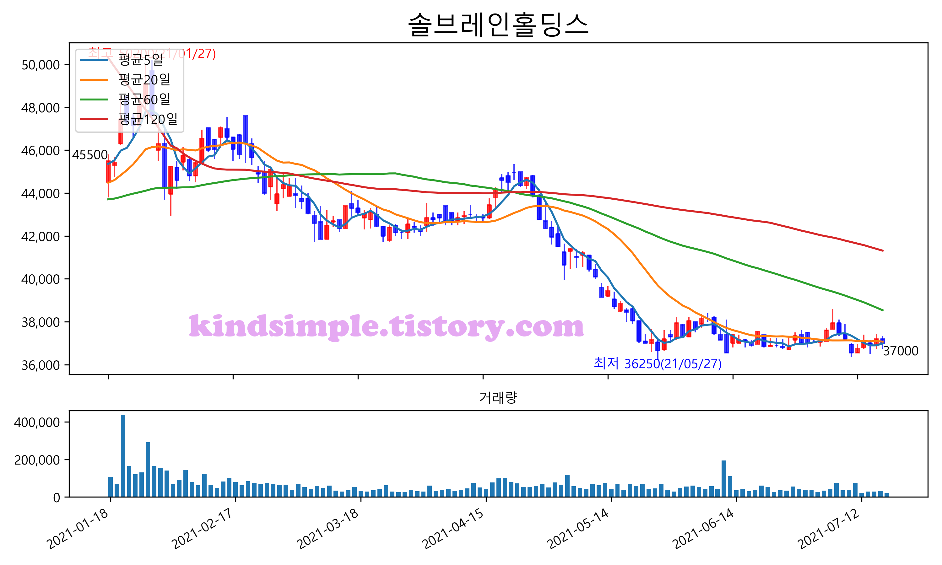 7월 17일 기준 주가는 37,000원 입니다. 아래는 최근 3년간의 주가흐름입니다.