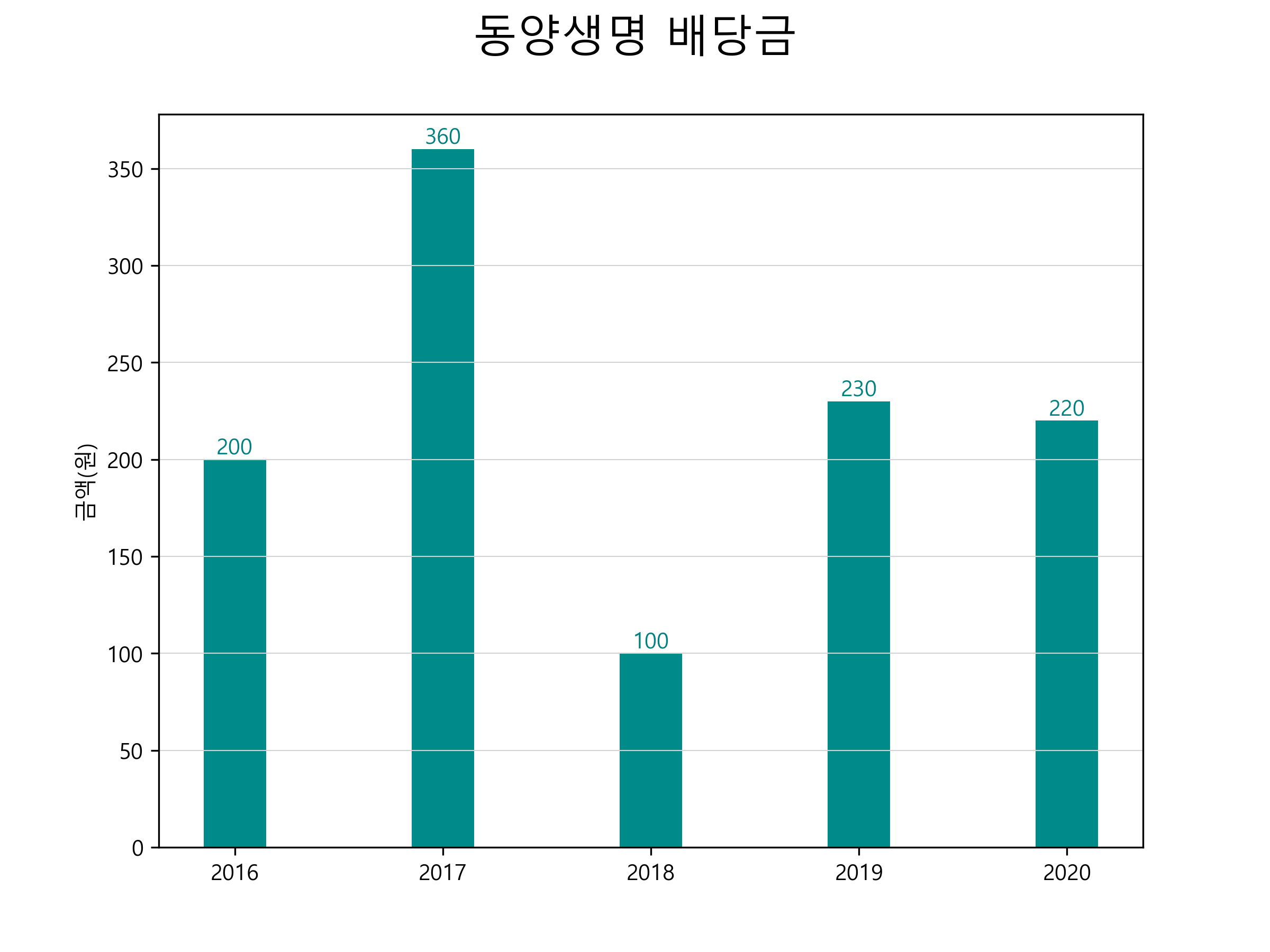 | 배당금 | 200 | 360 | 100 | 230 | 220 |