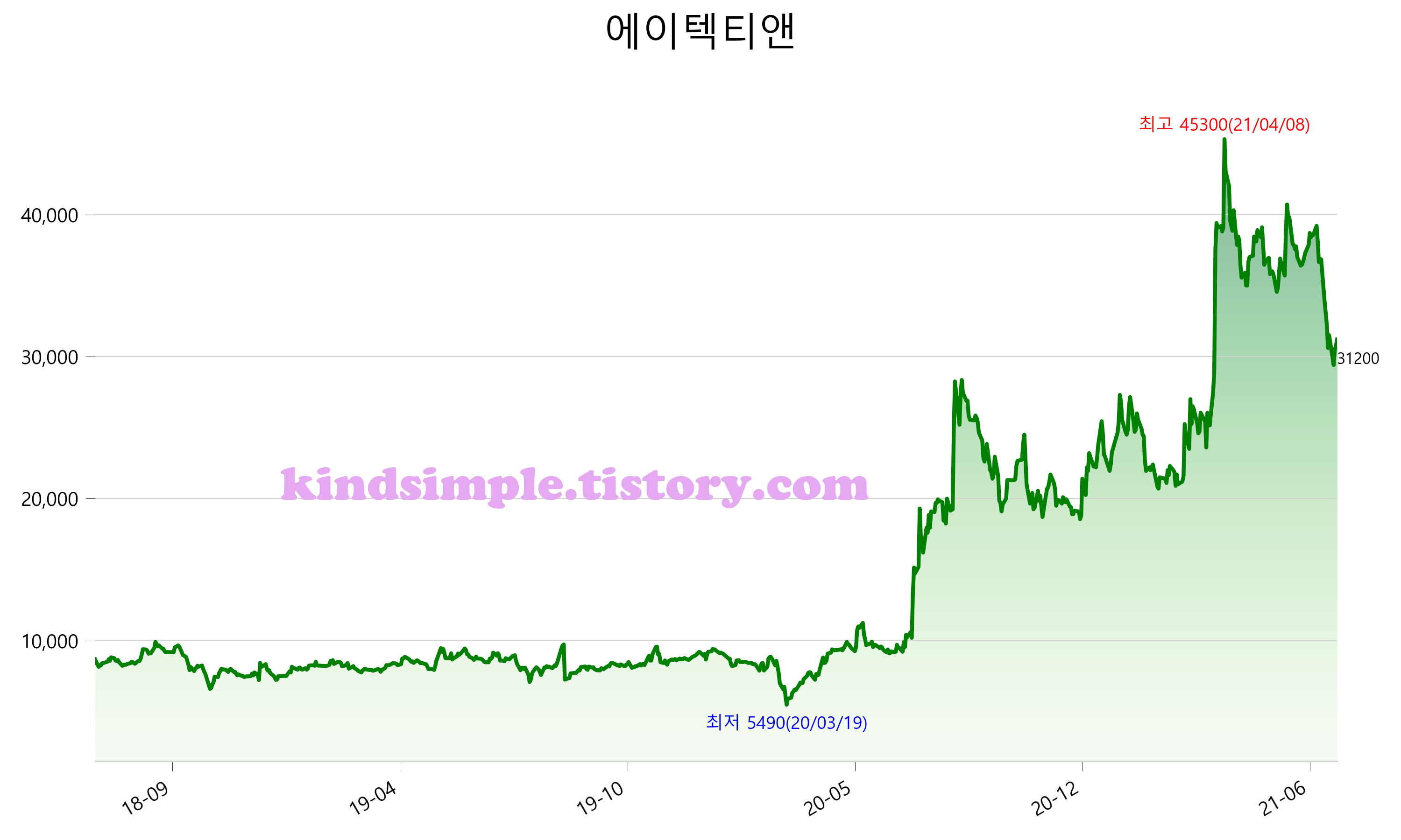 7월 18일 기준 주가는 31,200원 입니다. 아래는 최근 3년간의 주가흐름입니다.
