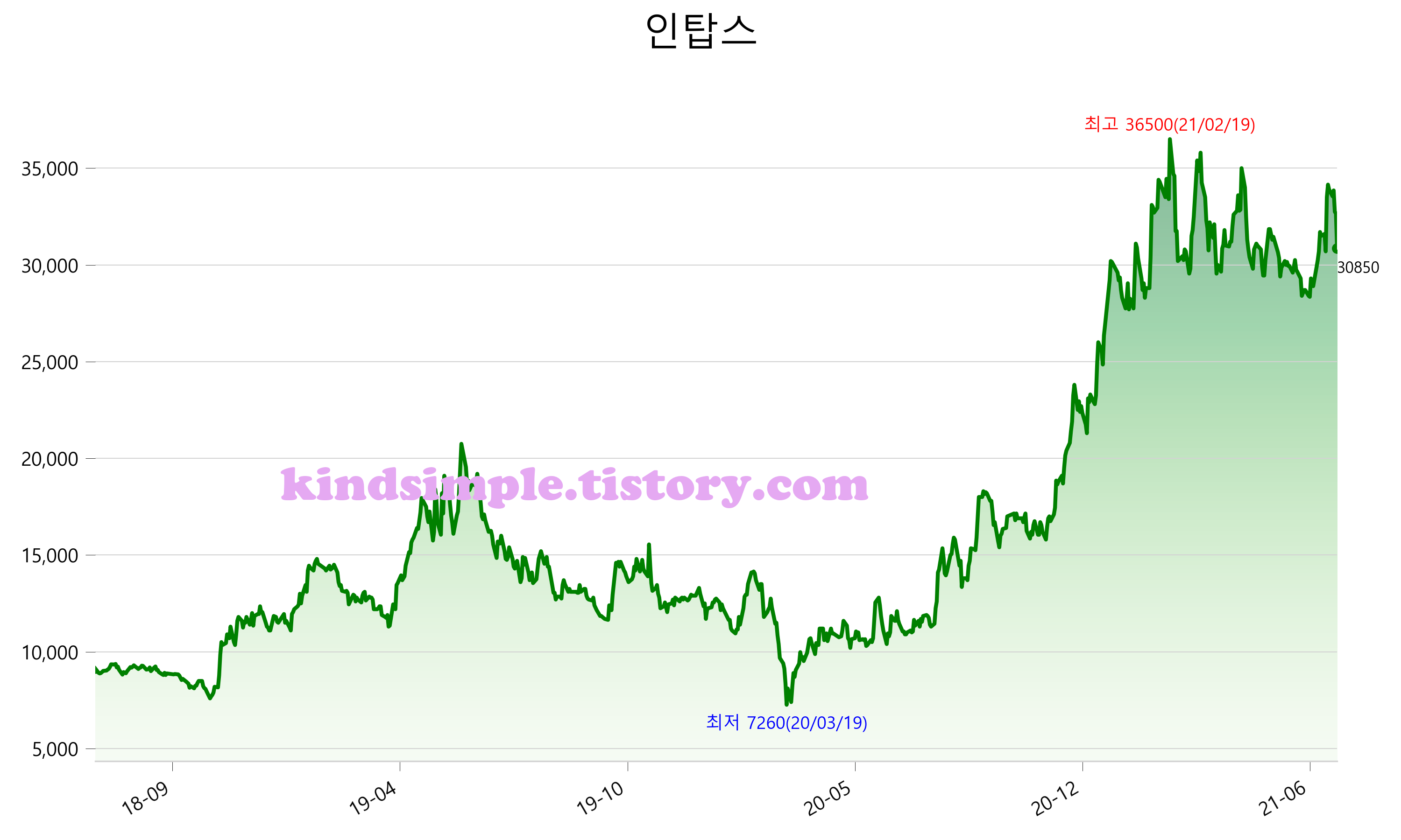 7월 18일 기준 주가는 30,850원 입니다. 아래는 최근 3년간의 주가흐름입니다.
