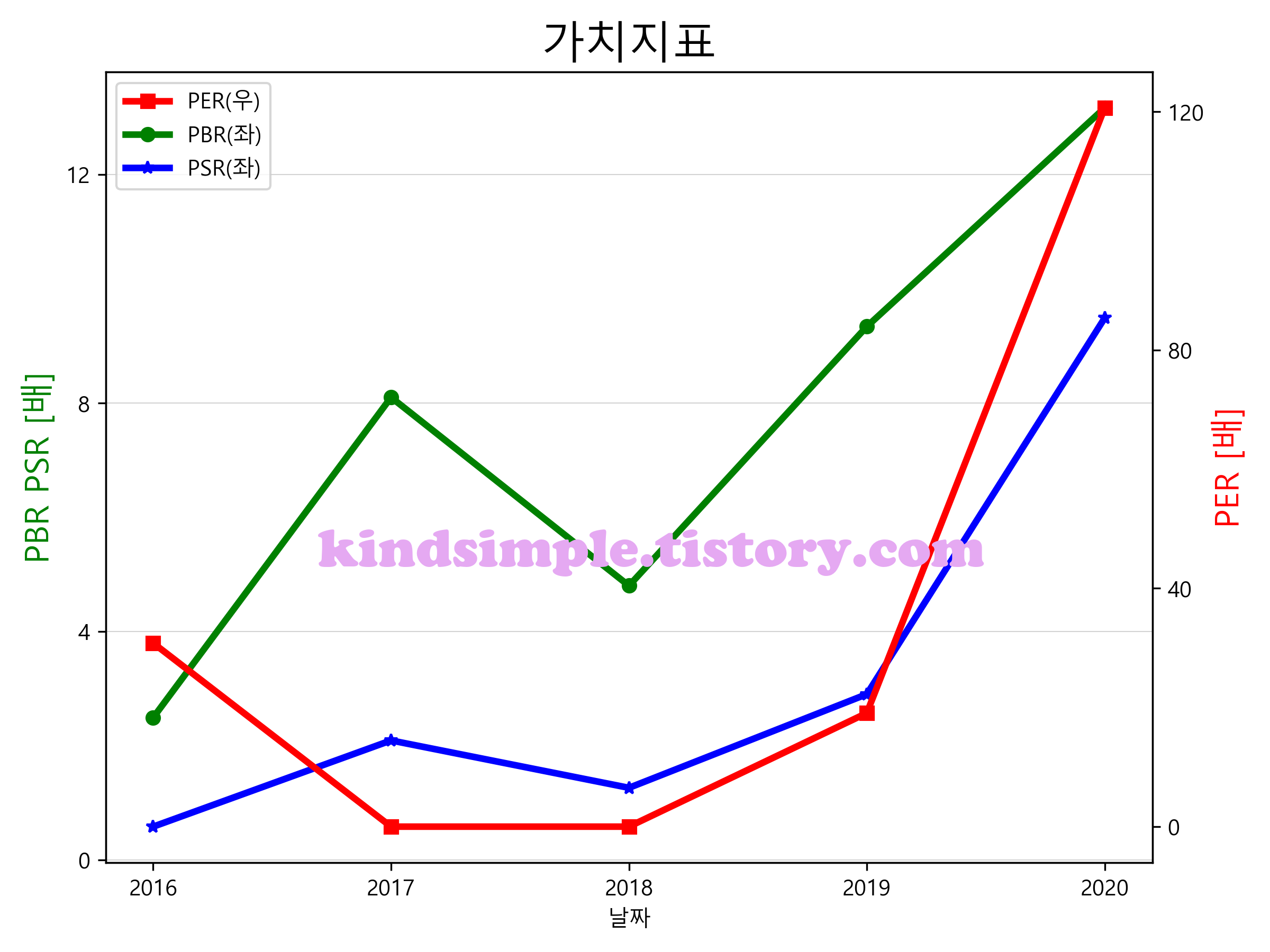 - PER : 98.88배, 동일업종 PER : -79.13배