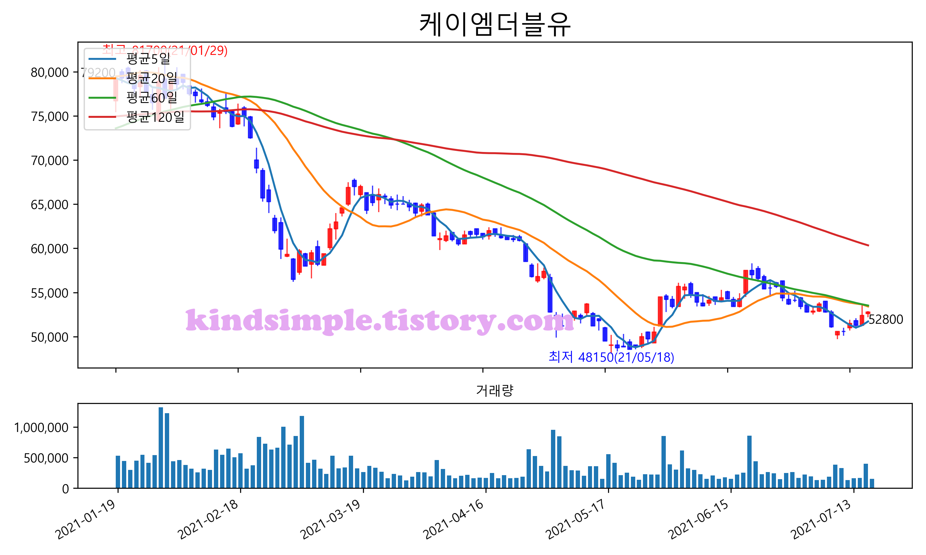 최근 6개월간 캔들차트 및 이동평균선입니다.