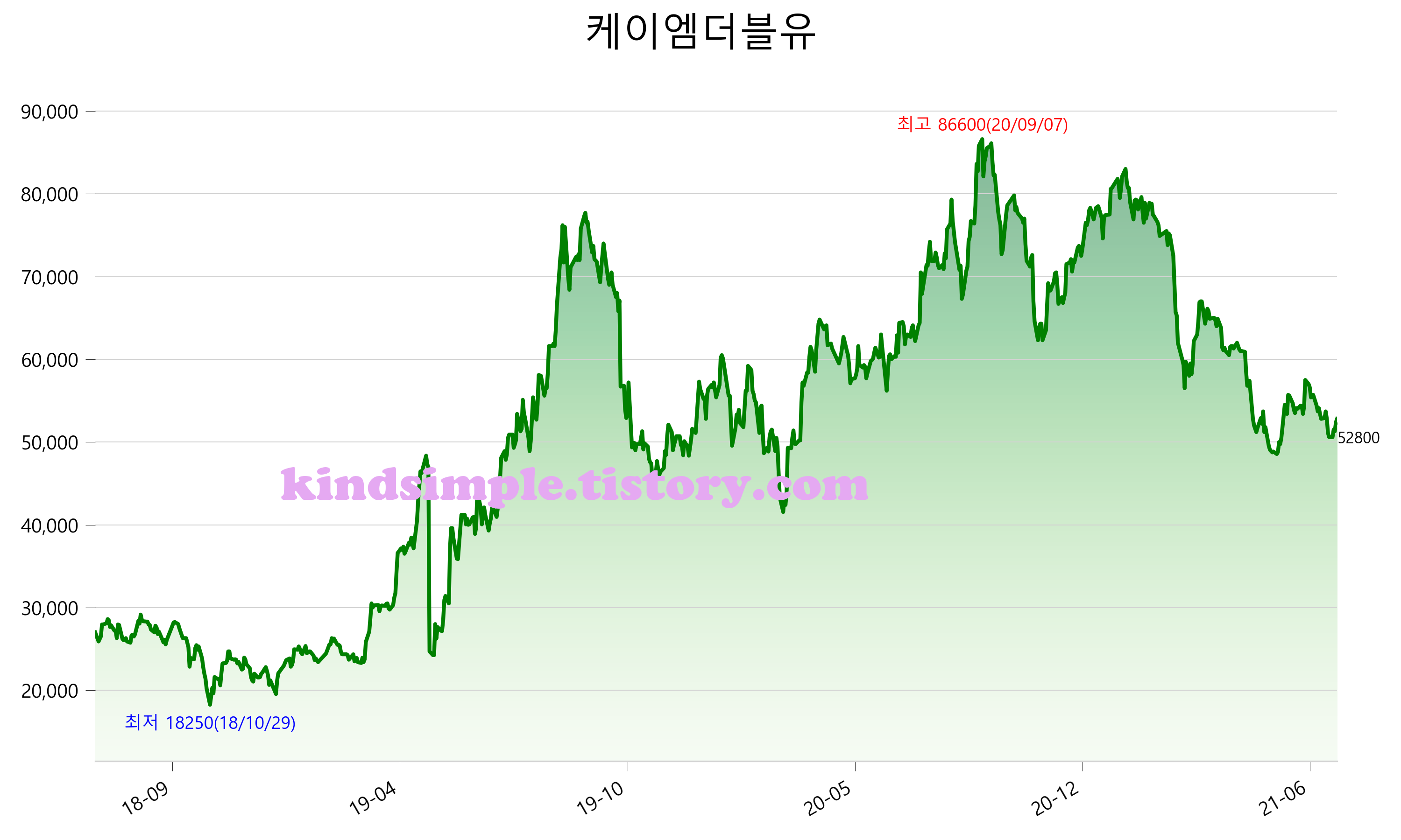 7월 18일 기준 주가는 52,800원 입니다. 아래는 최근 3년간의 주가흐름입니다.