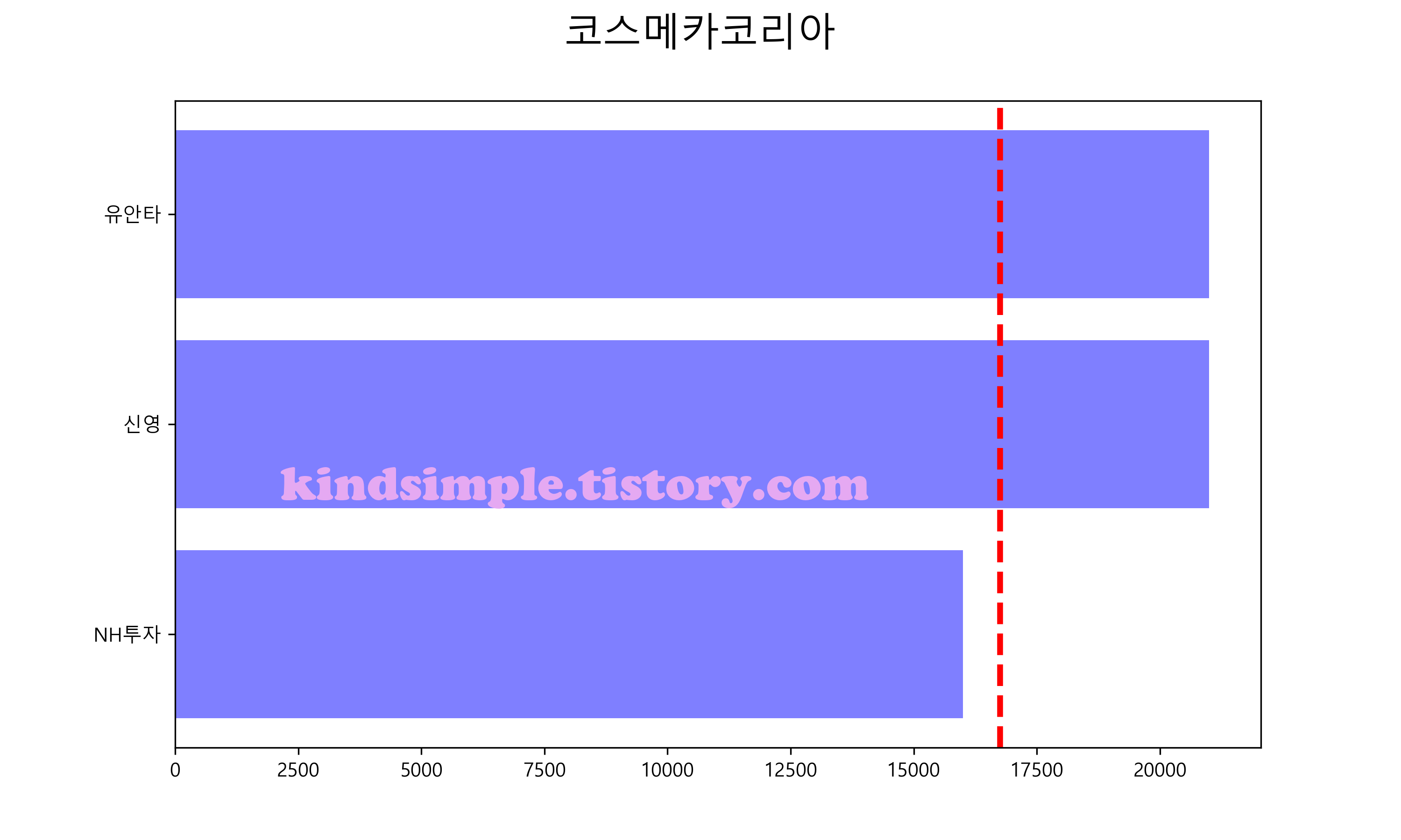 아래 그래프의 빨간색 점선이 현재 주가입니다.