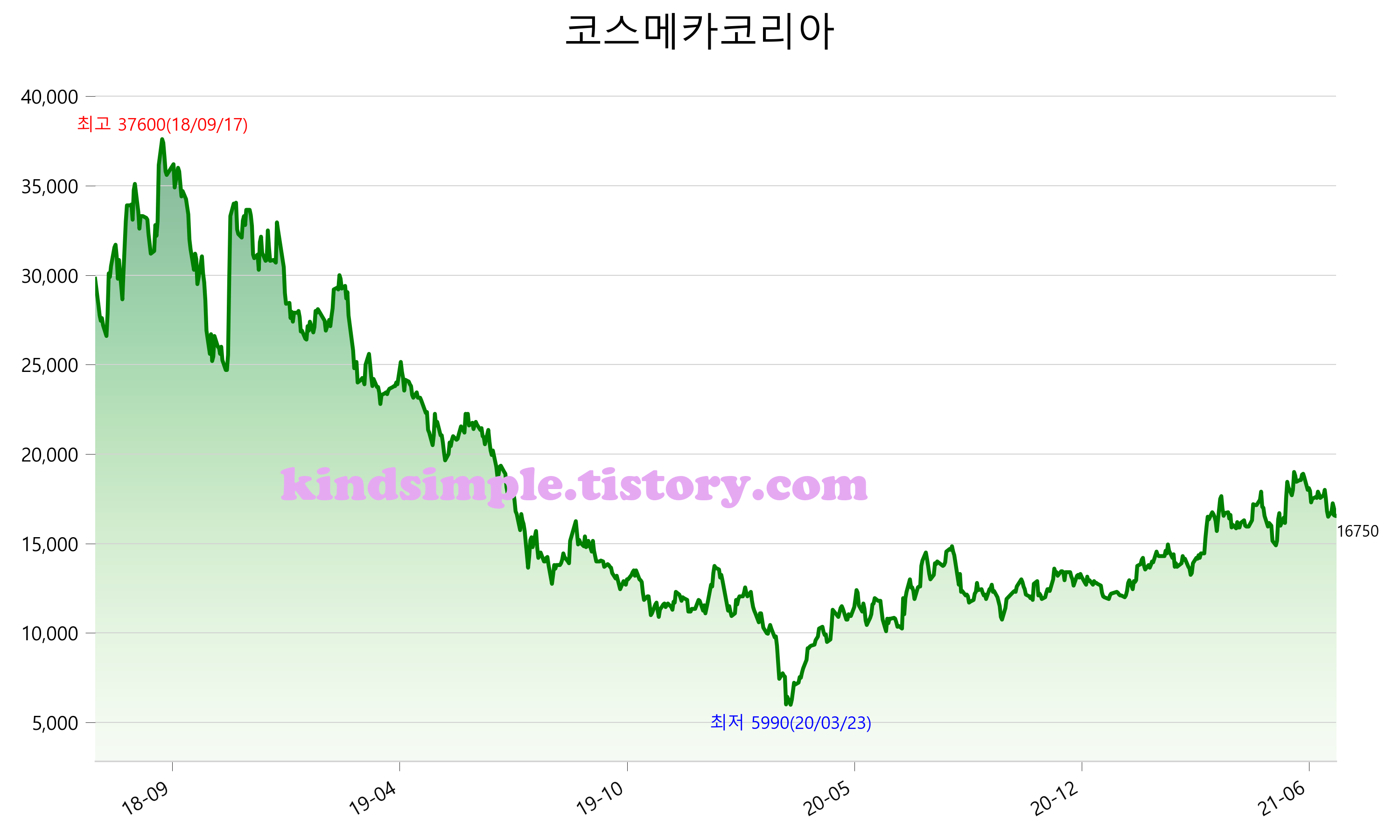 7월 18일 기준 주가는 16,750원 입니다. 아래는 최근 3년간의 주가흐름입니다.