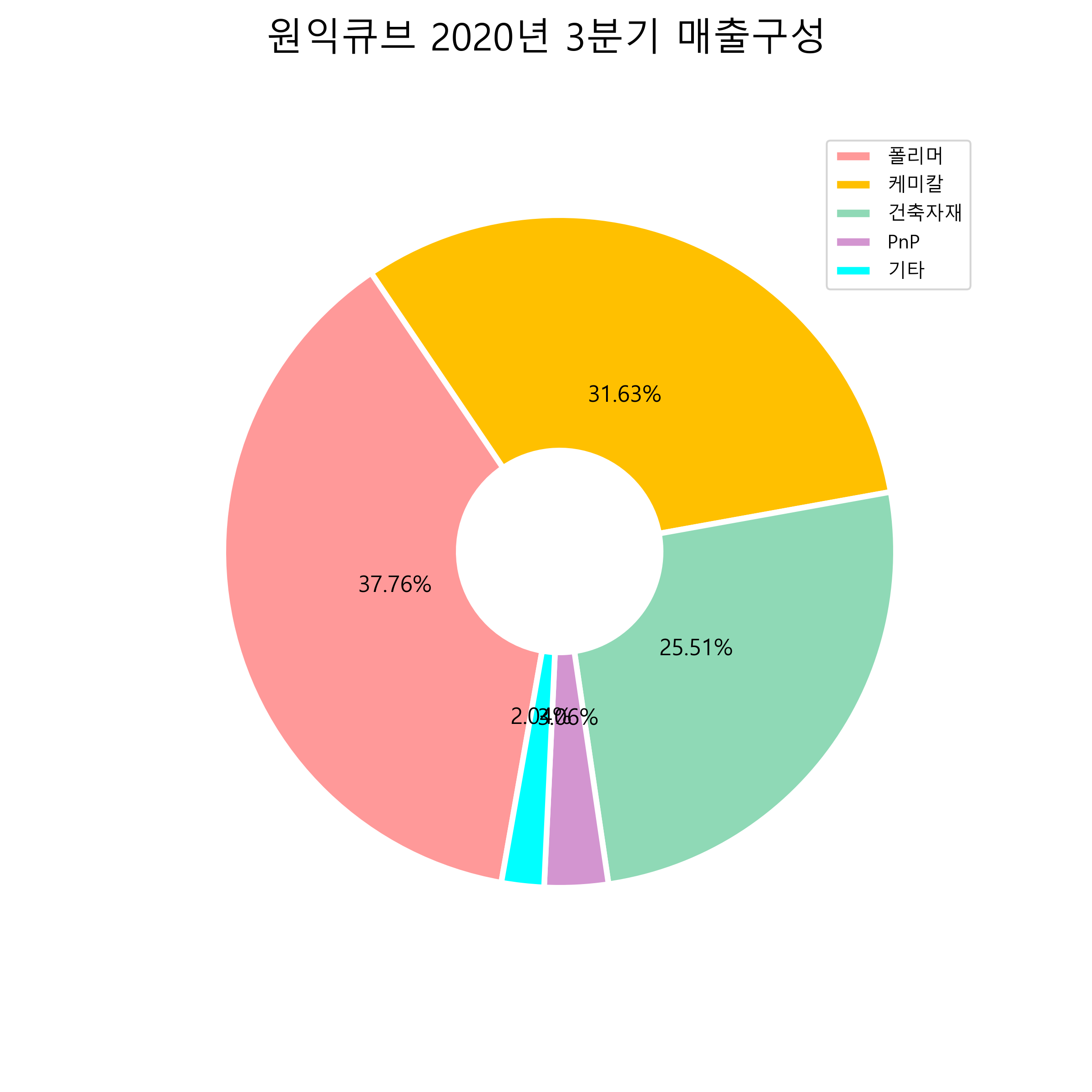 원익큐브의 2020년 3분기 매출은 469억원, 영업이익 7억원, 당기순이익 7억원을 기록했습니다. 원익큐브의 분기별 매출 및 영업이익, 당기순이익 표입니다.