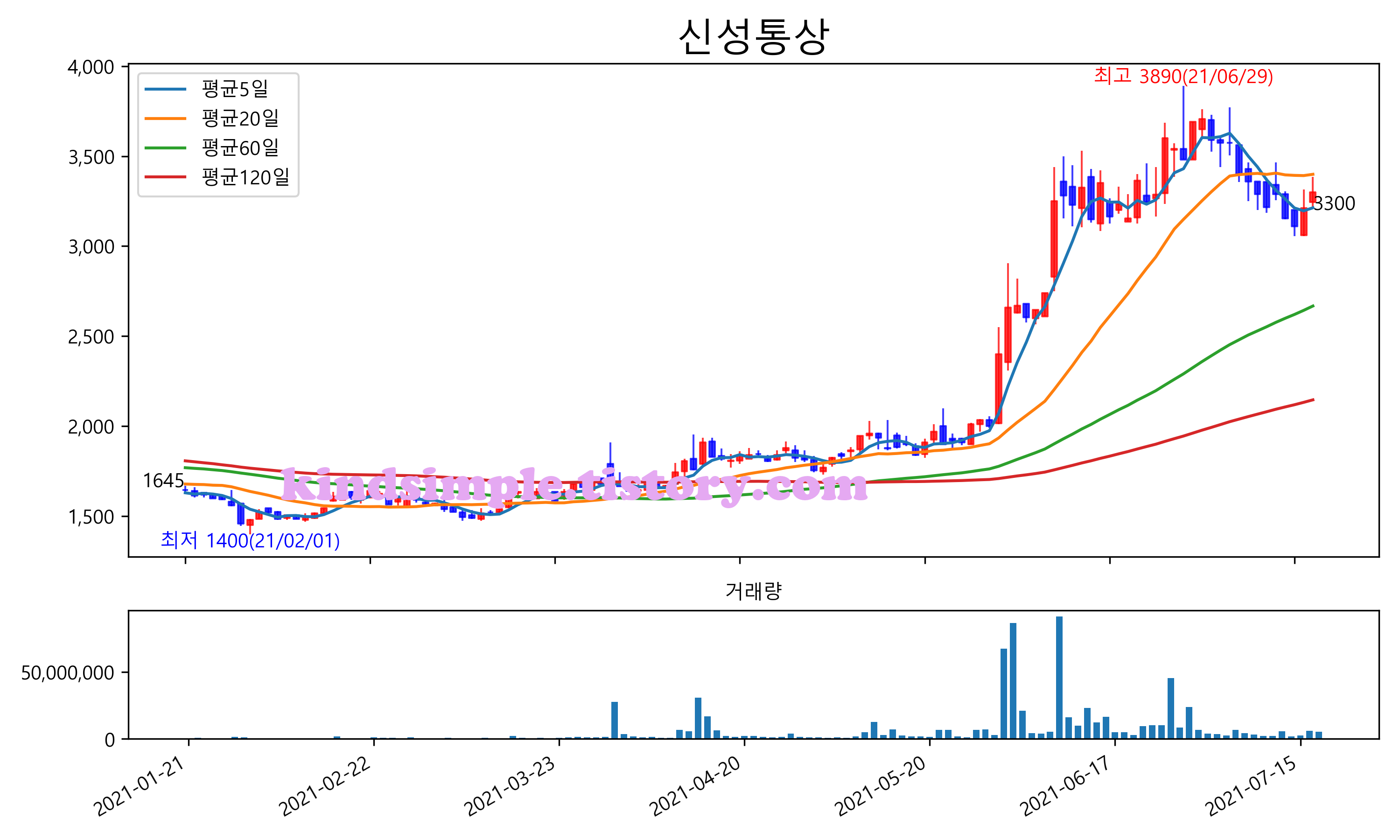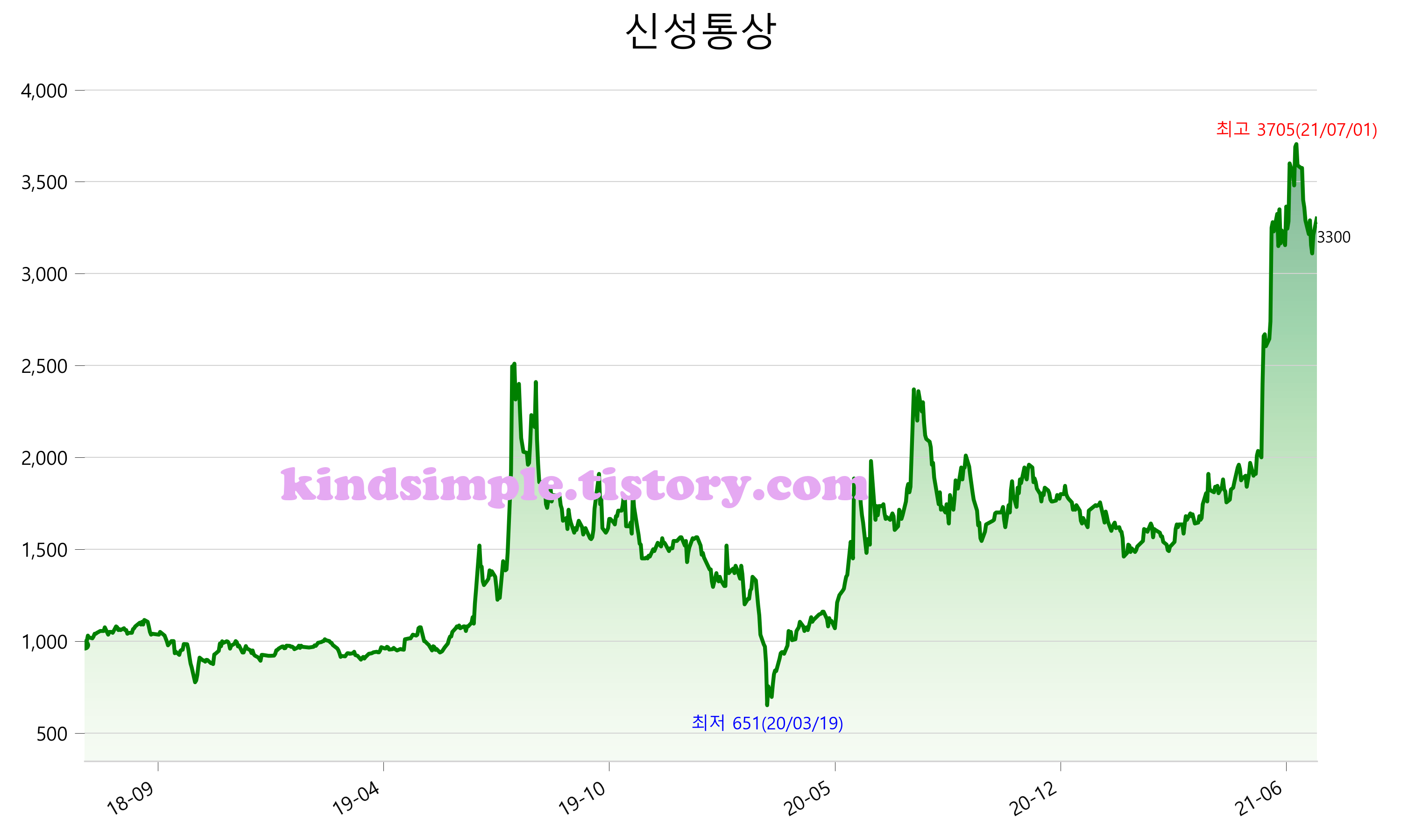 7월 20일 기준 주가는 3,300원 입니다. 아래는 최근 3년간의 주가흐름입니다.